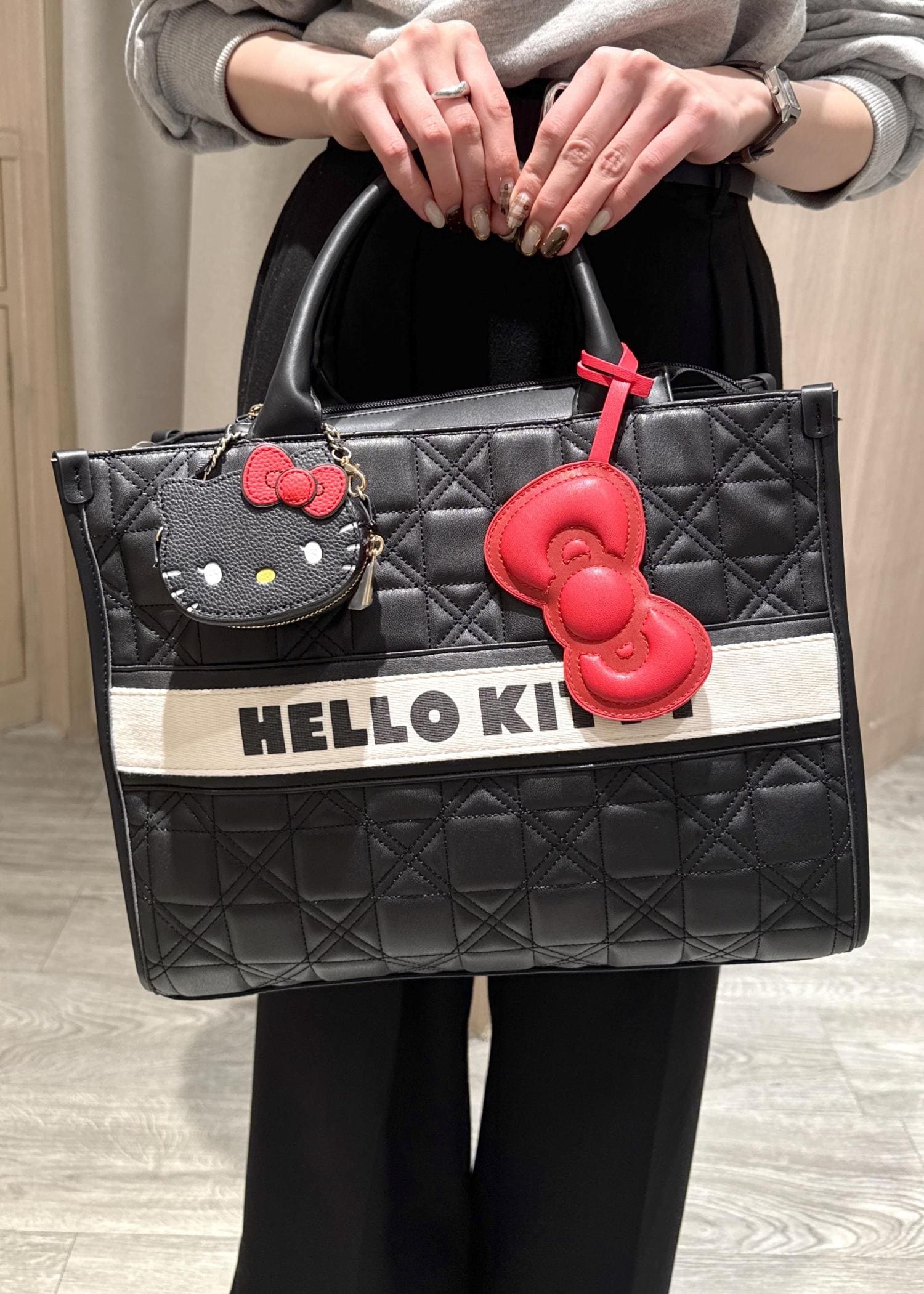 VIS【HELLO KITTY×VIS】リボンチャームトートバッグブラック / F¥7,909レビューHELLO KITTY × VISコラボトートバッグ!キティちゃんの名前のロゴとリボンのシンプルなデザインなので、大人も使いやすい!