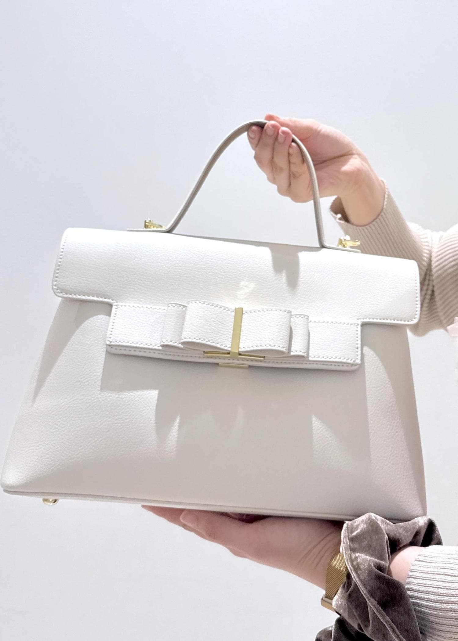 VISリボンベルトワンハンドルバッグ/軽量・2WAYオフホワイト / F¥6,919レビュー台形型のデザインがシンプル且つ大人っぽく上品に見えるデザインバッグ⭐︎2wayでショルダーとしても使え、片手で開けられるのが嬉しいポイント!中の内側にも小さなポケットも入るので小物も収納可能◎500mlのペットボトルも横に入るぐらいの大きさでした。