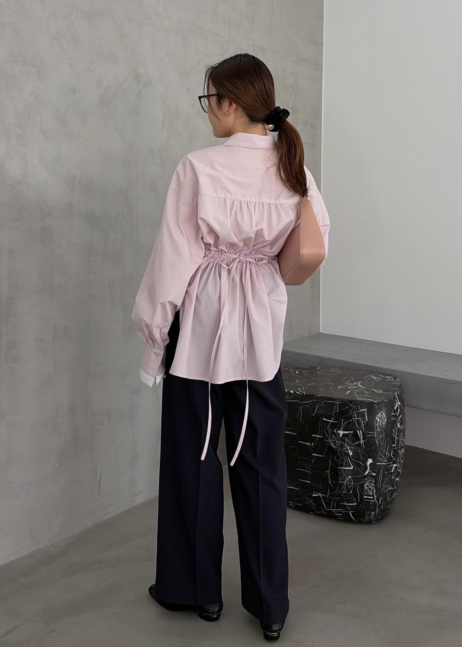 NEW! 予約VISウエストリボンシャツ/イージーケア・WEB限定カラーピンク / F¥5,489レビュー身長150センチ、ヒップまるまる隠れる丈感