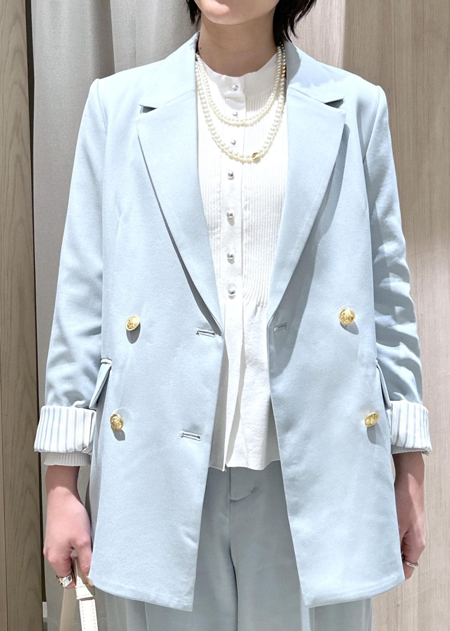 VIS【美easy】コンフォート金ボタンジャケット/イージーケア・UVケア・セットアップ対応ライトグリーン / S¥8,899レビュー身長155cm、Sサイズ着用