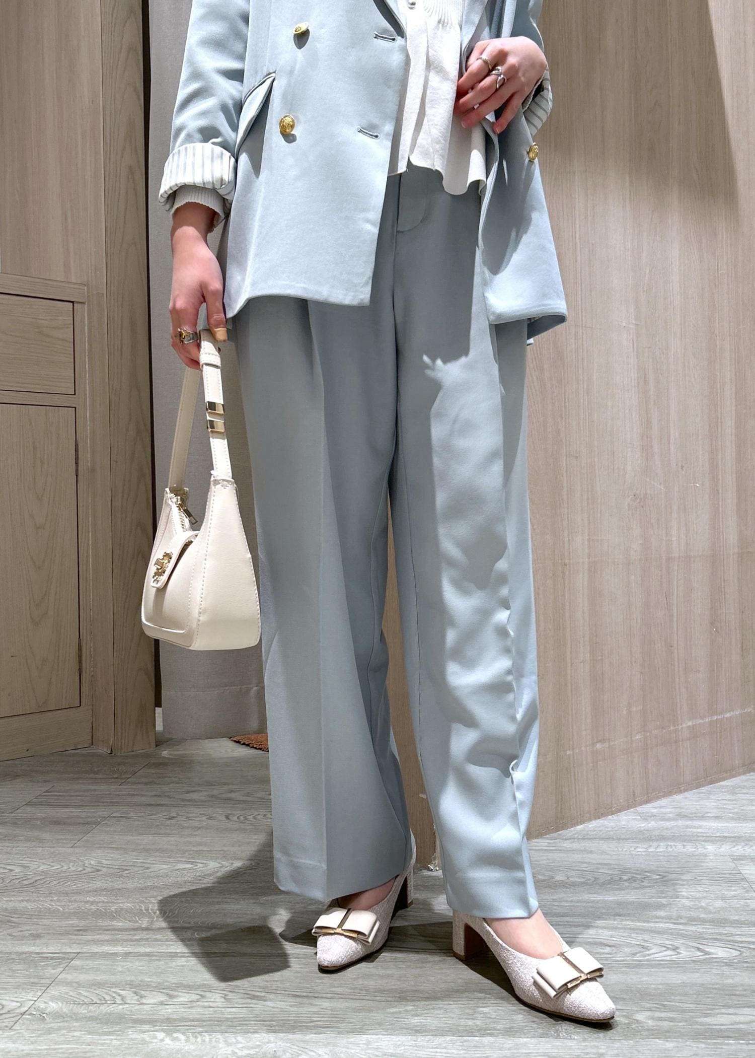 VIS【美easy】コンフォートストレートワイドパンツ/イージーケア・UVケア・セットアップ対応ライトグリーン / S¥5,929レビュー身長155cm、ヒールを履いて踵が見える丈感です。