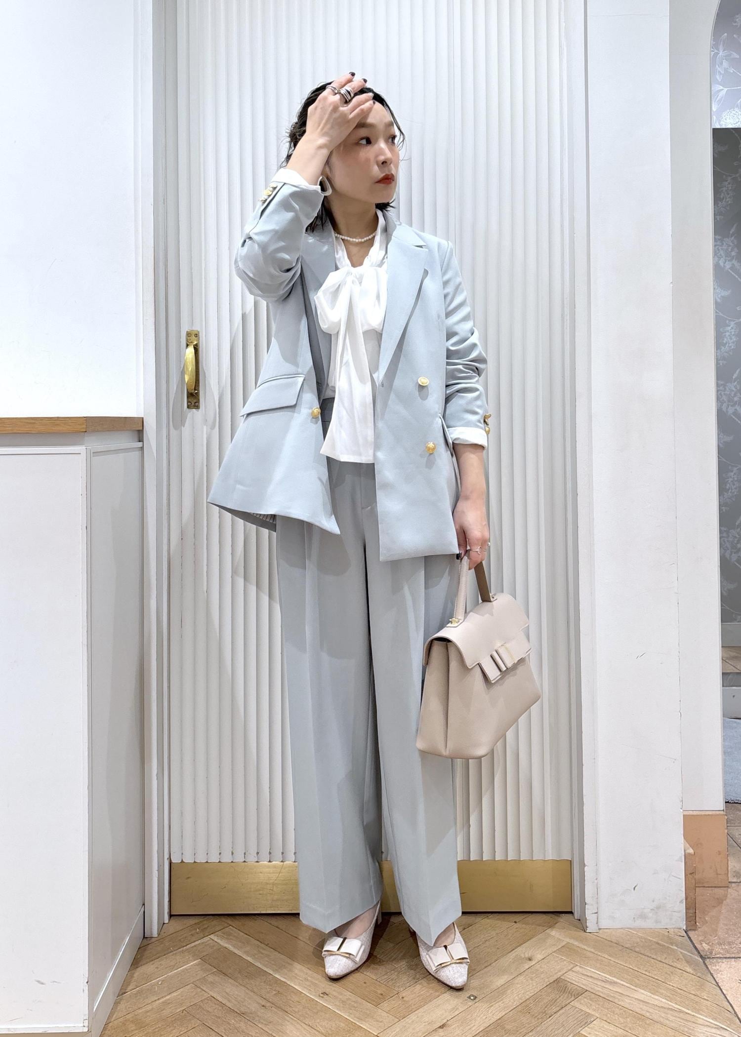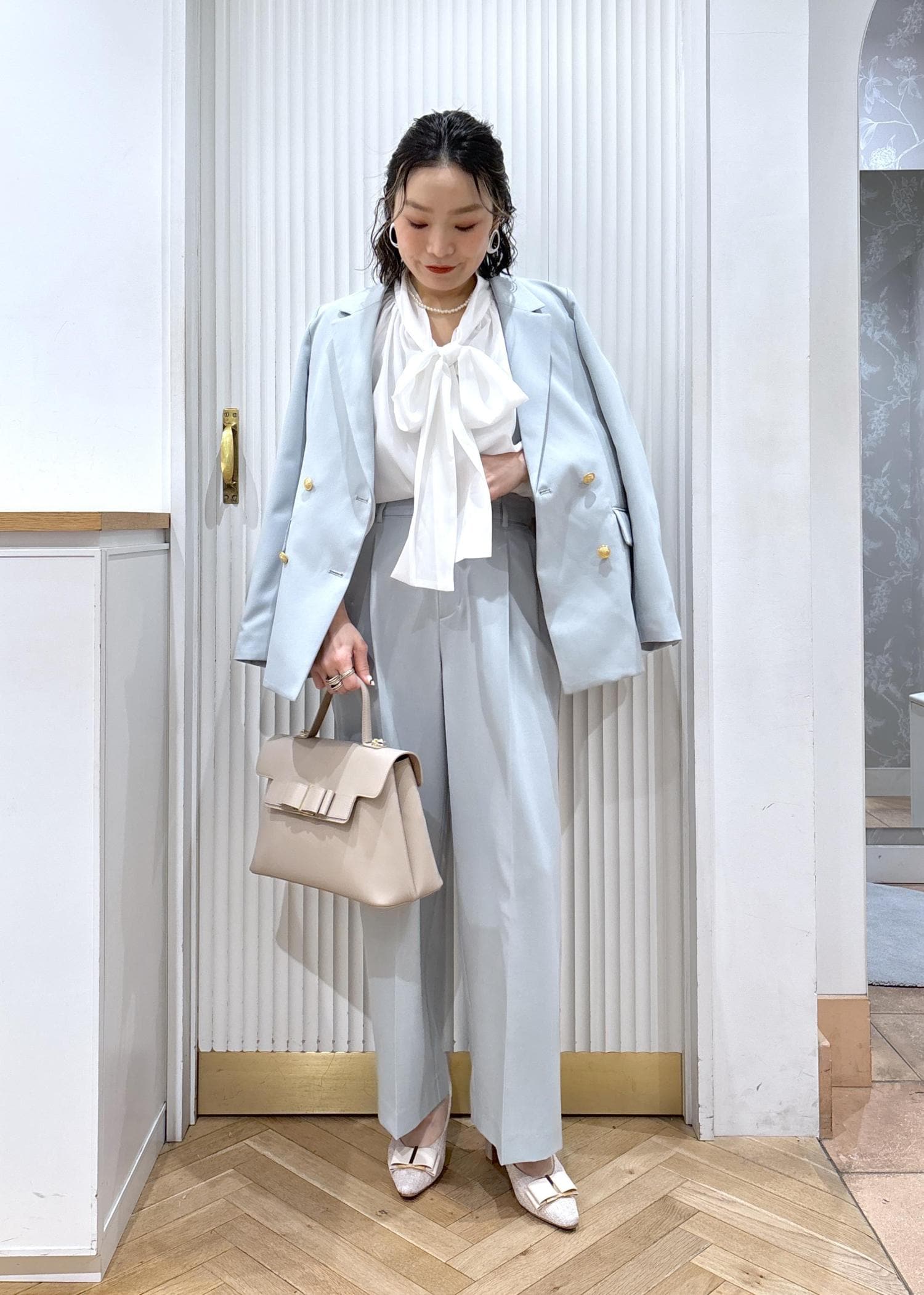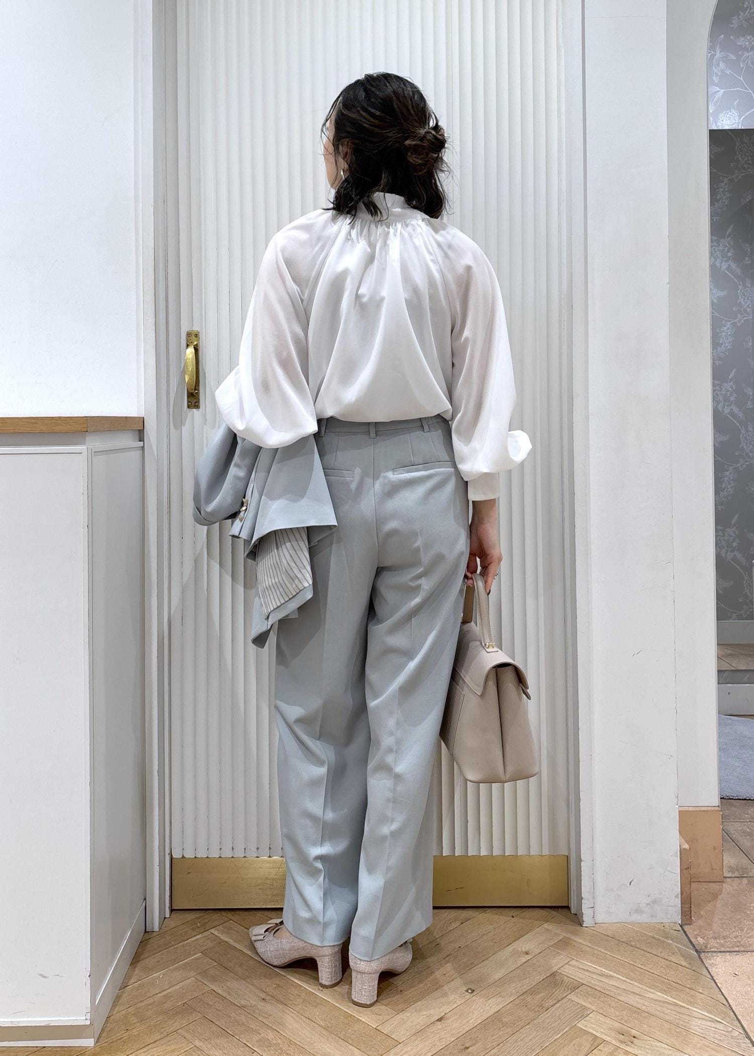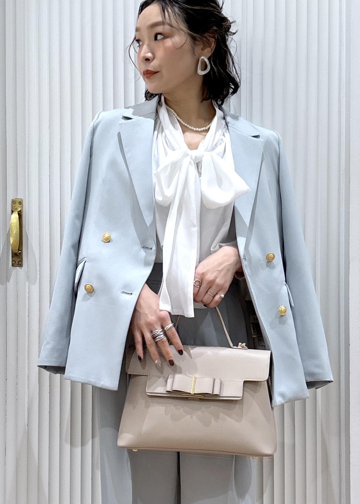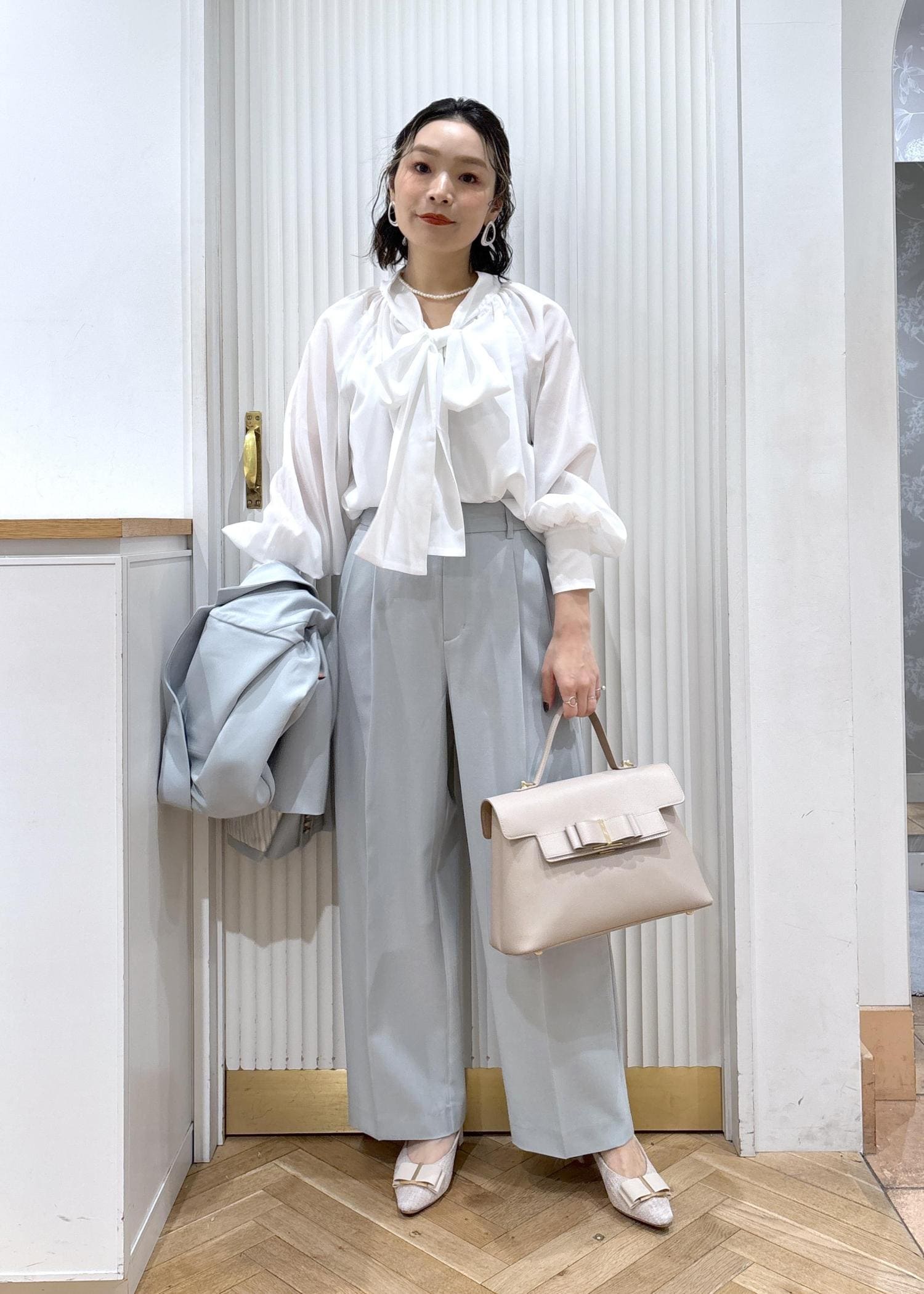 VIS前後2WAYボリュームボウタイブラウス/イージーケアオフホワイト / F¥5,929レビュー157cm、Sサイズで肩周りや身幅のサイズ感はジャスト。長さはお尻にかかる着丈です。