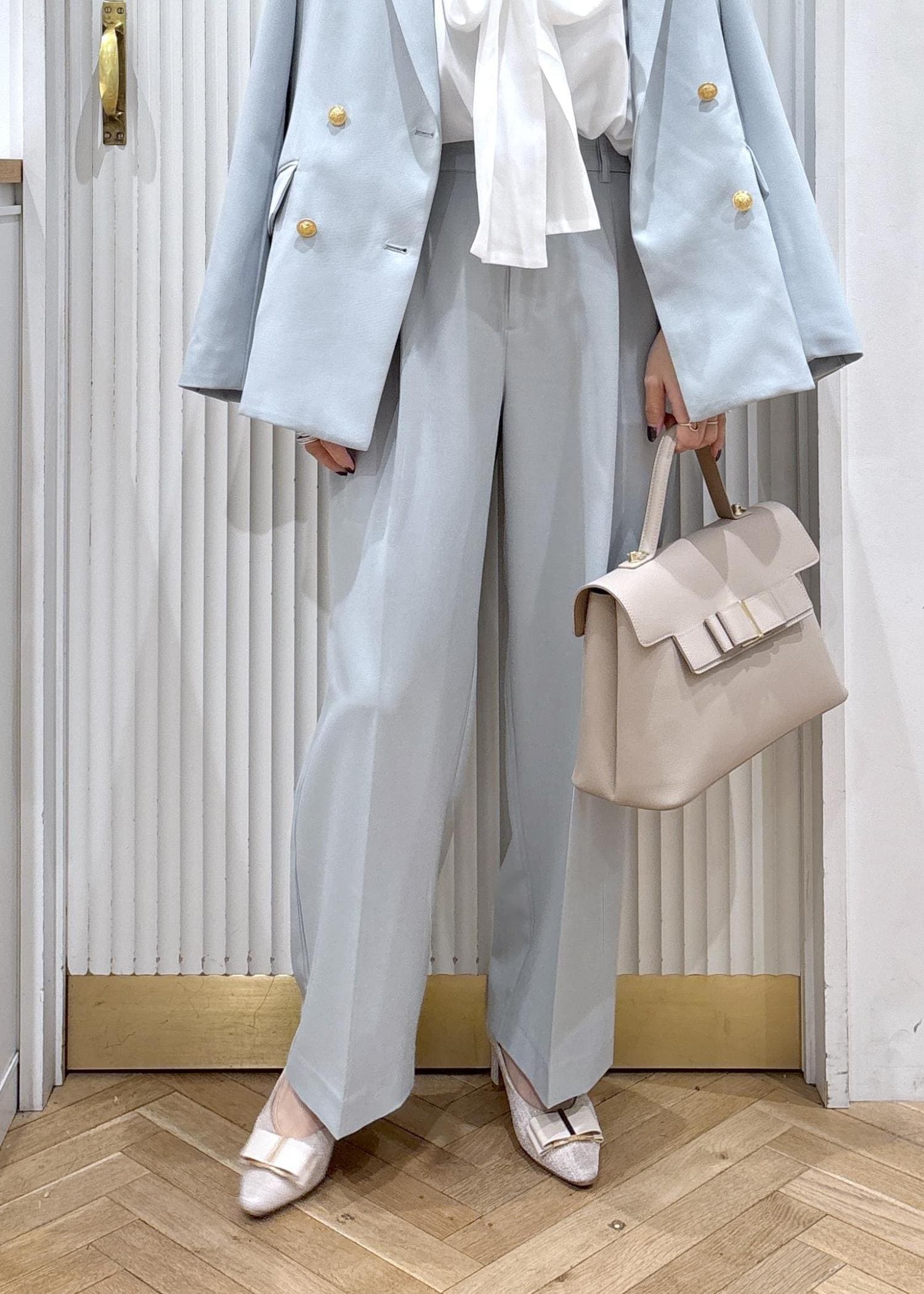 ゆるっとはきたい方や高身長の方はワンサイズアップして頂いてもウエストはアジャスト付きなので調整が出来て安心!ラインは程よい太さがありカジュアルにも綺麗めにも合わせられます。セットアップで着用出来るビスチェドッキングシャツやジャケットでのコーディネートがお勧め♡ -