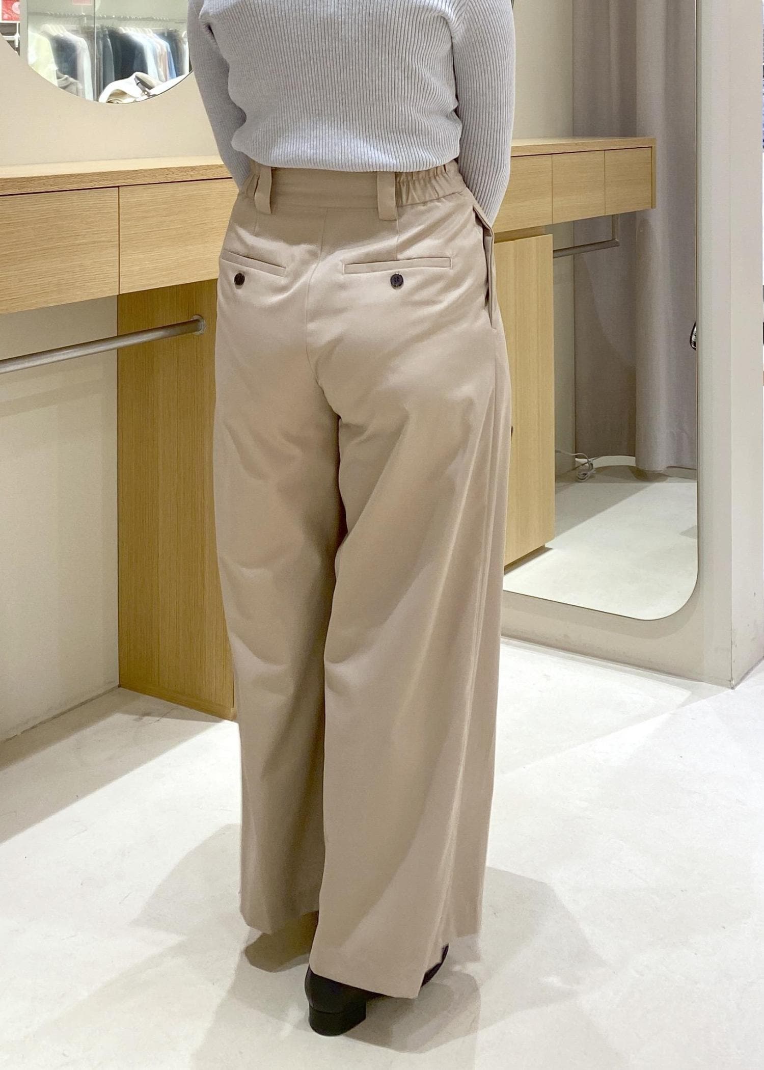 タックワイドもウエストスッキリ見えするので、