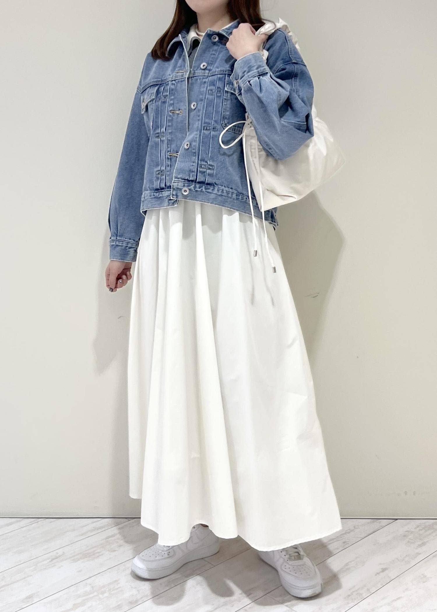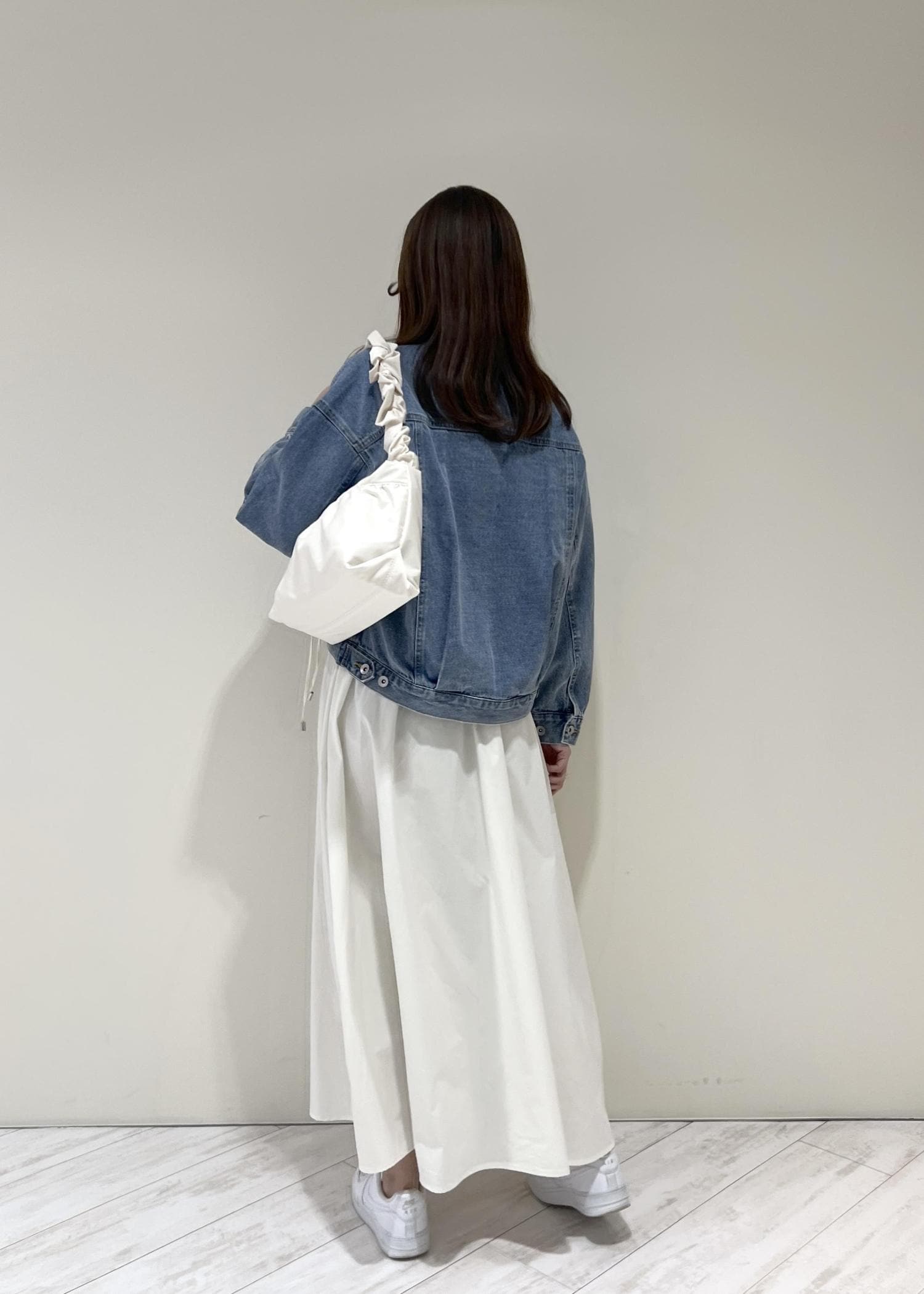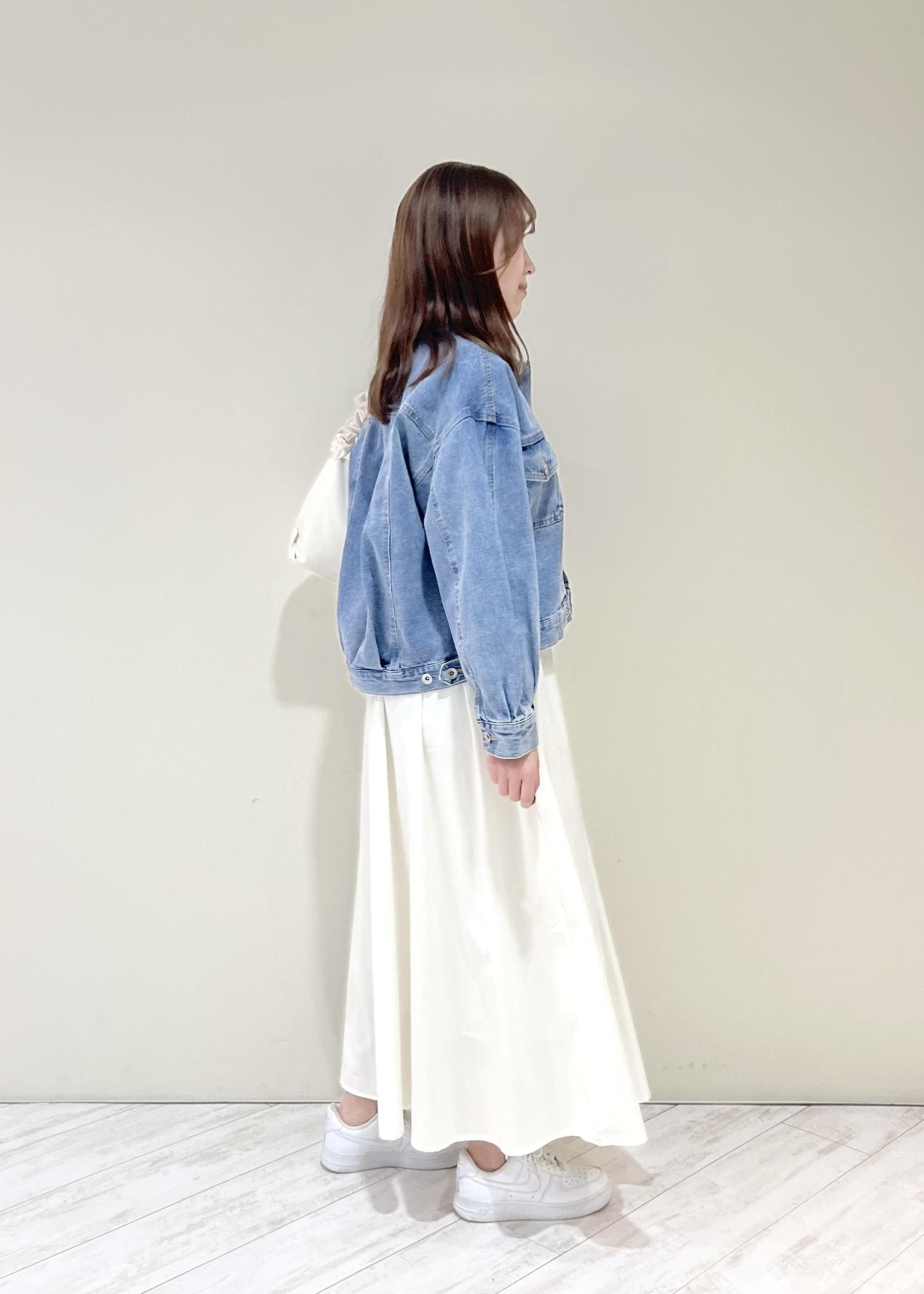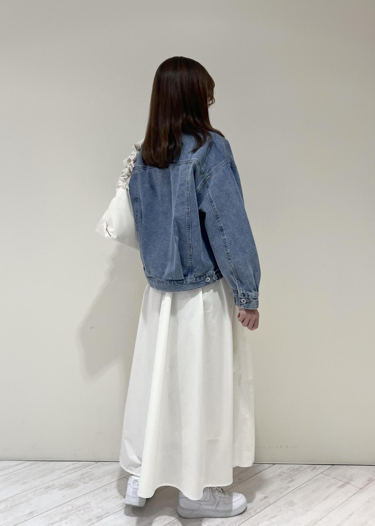 VISボリュームスリーブデニムジャケットサックス / F¥9,999レビュー程よくゆとりのあるサイズ感がお洒落なデザインです!着丈は腰にかかるくらいで長過ぎないので、ボトムやワンピースとバランス良く着られます◎