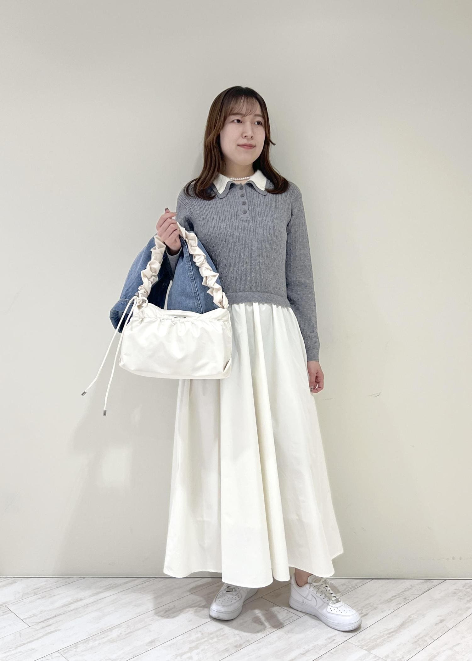 VISダブルカラーポロニットドッキングワンピースライトグレー / F¥8,899レビュー着丈はくるぶし上にくる長さでした。ニットなのとウエストはゴムなので着心地抜群です!程よくゆとりのあるサイズ感でした♡