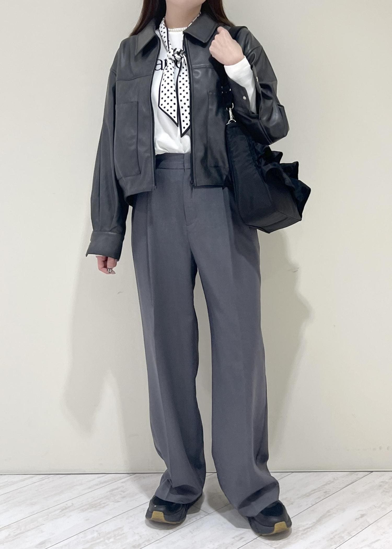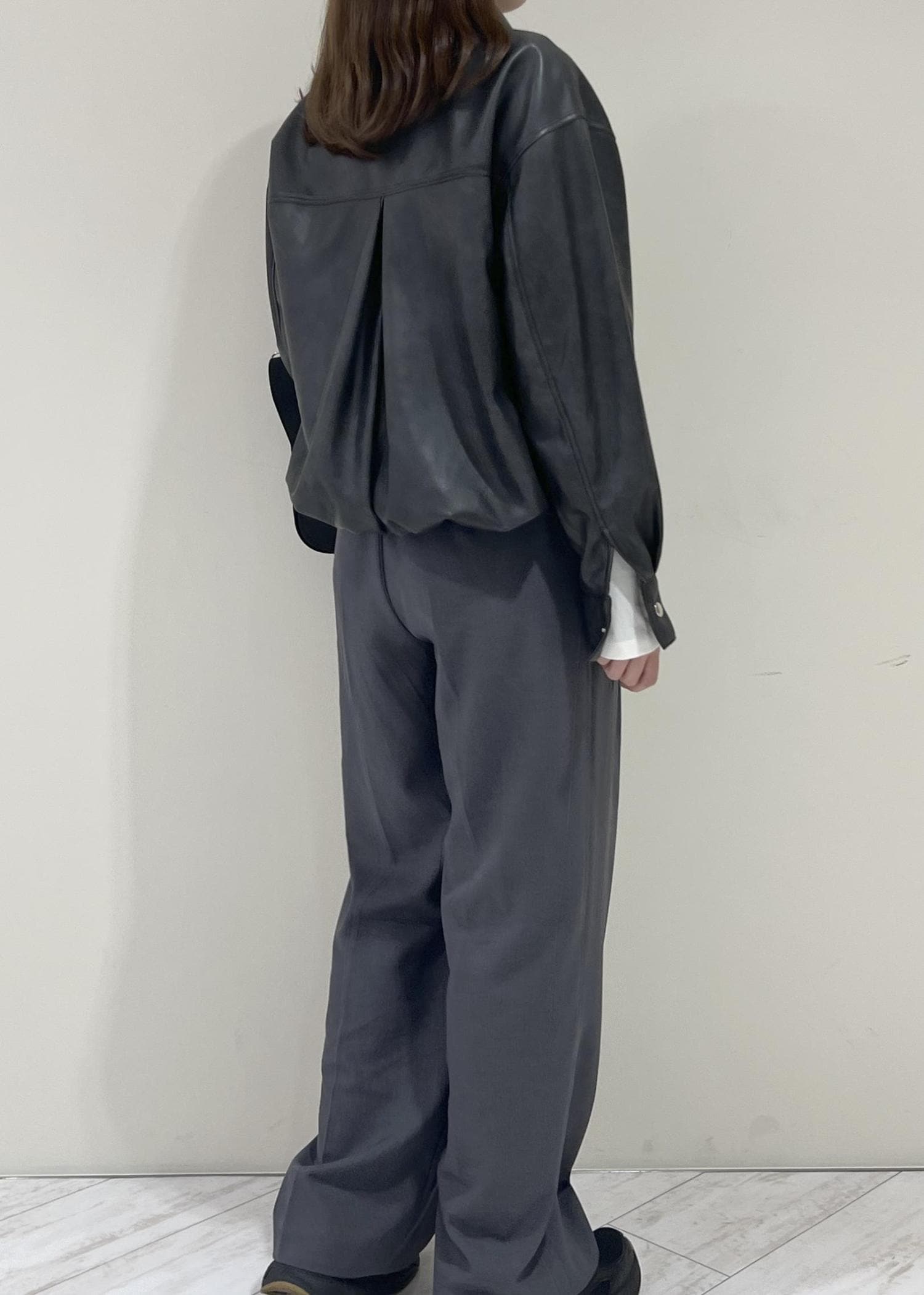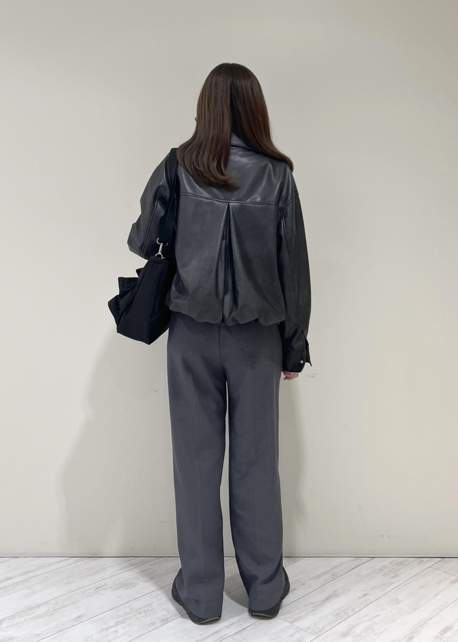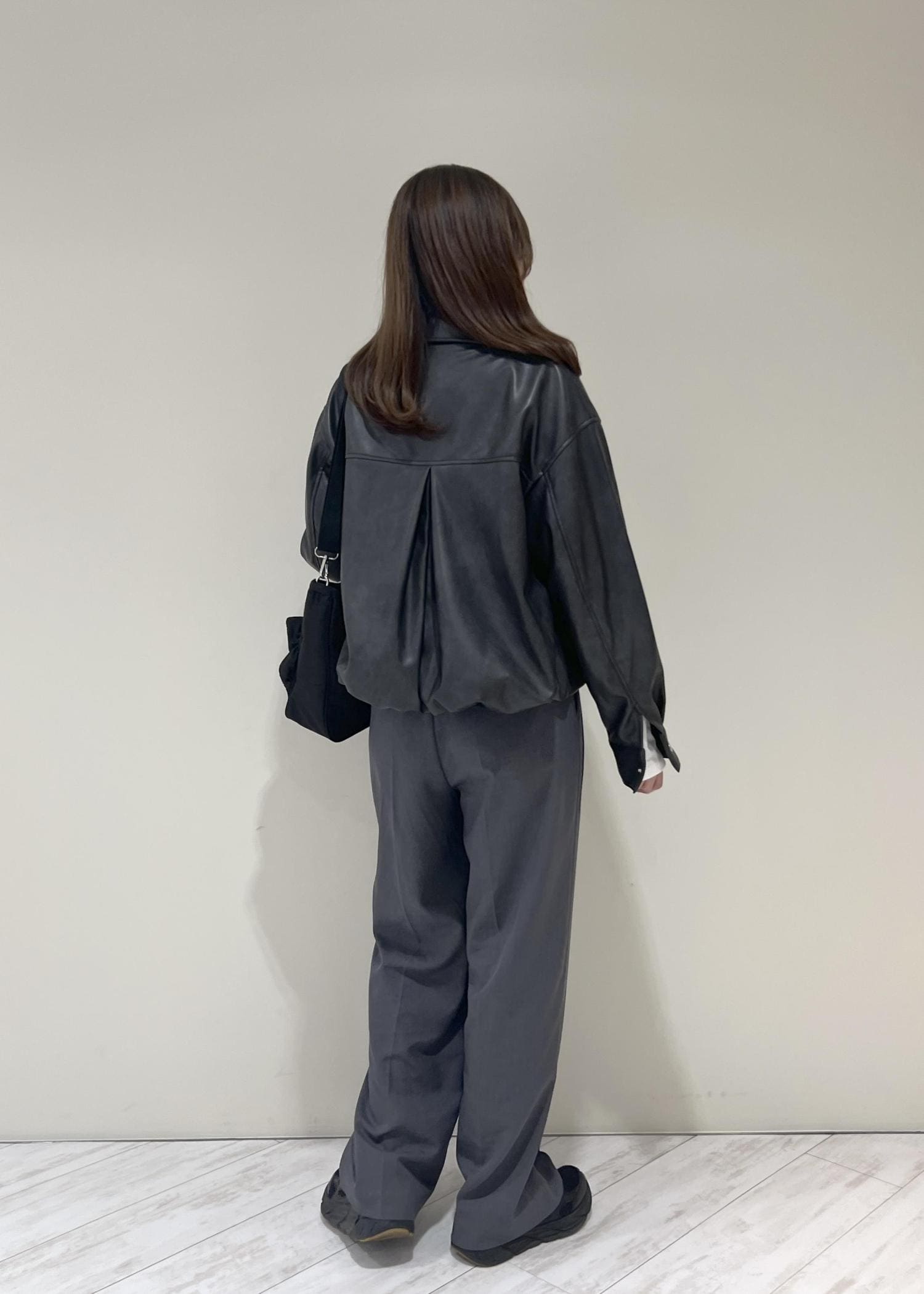 VISアウトポケット合皮ブルゾンブラック / F¥10,989レビューくしゅっとした裾と丸みのあるシルエットで柔らかい印象になります!程よくゆとりのあるサイズ感で中にも着込めます◎