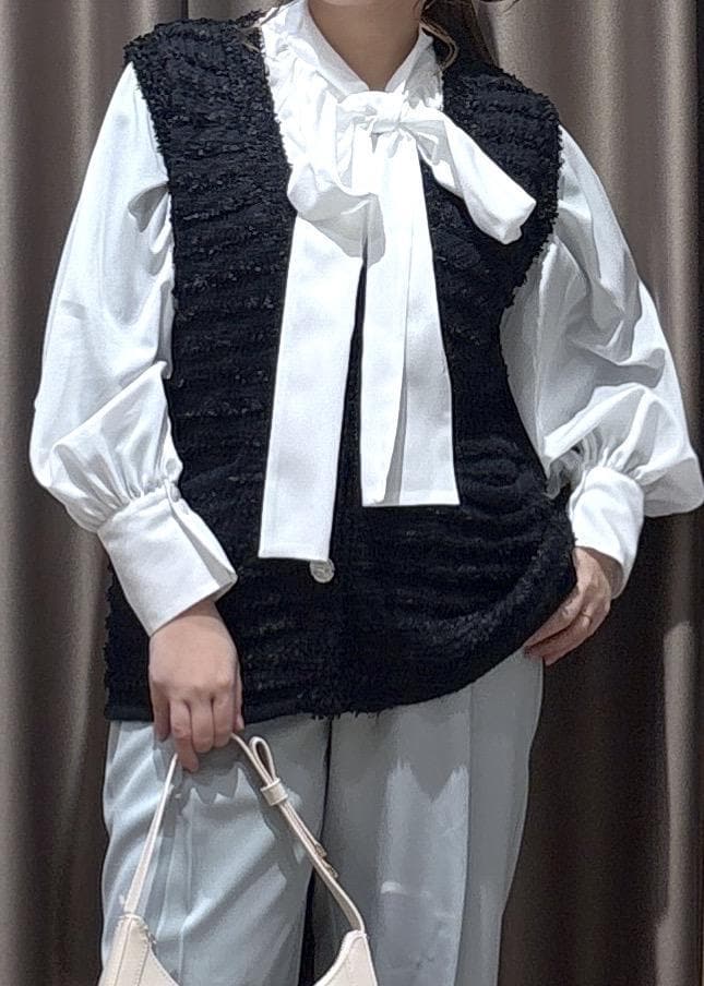 VIS前後2WAYボリュームボウタイブラウス/イージーケアオフホワイト / F¥5,929レビュー1枚で華やかに着られるボウタイブラウス!