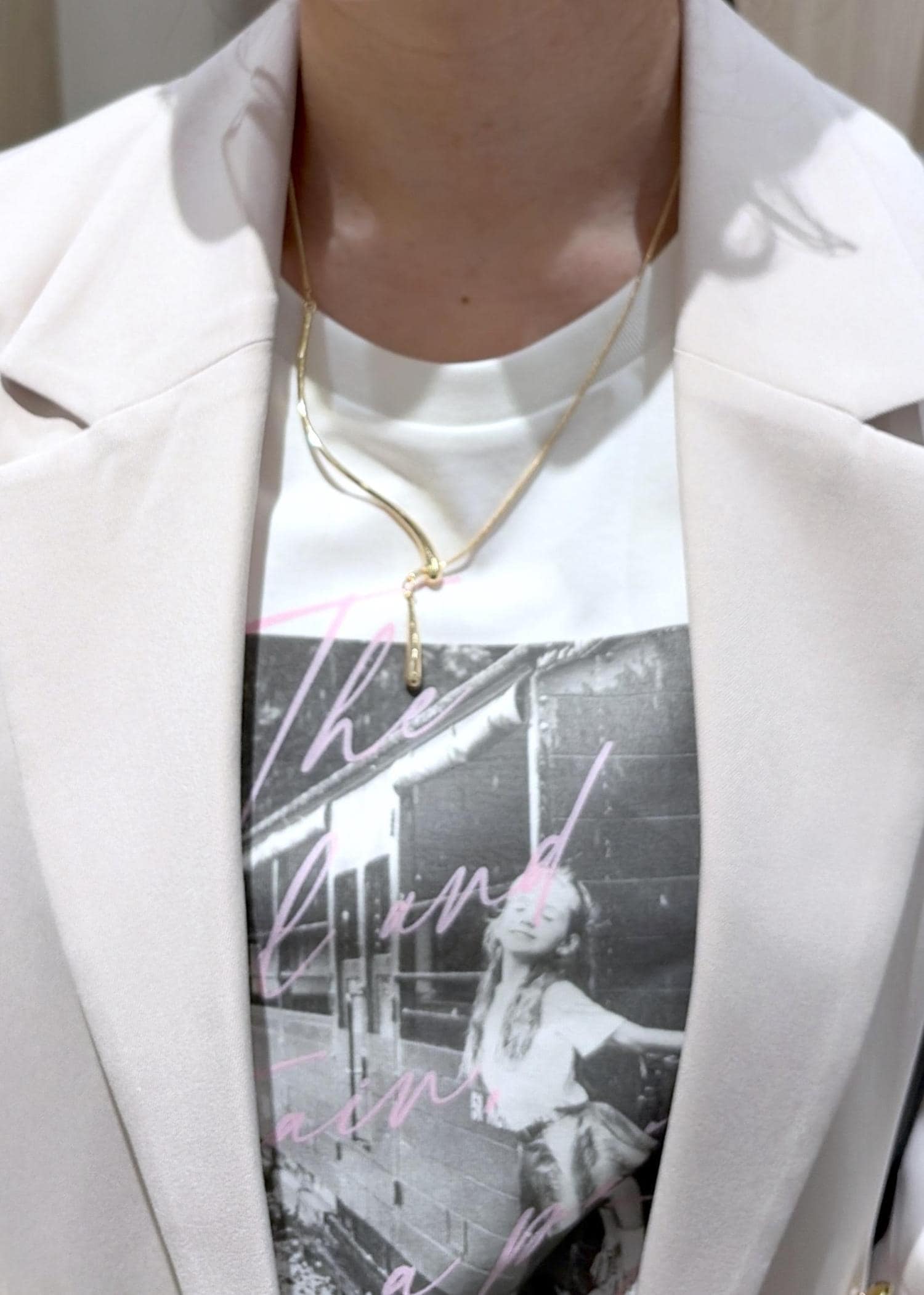 Y字のニュアンスメタルが女性らしく華やかな首元になります♪