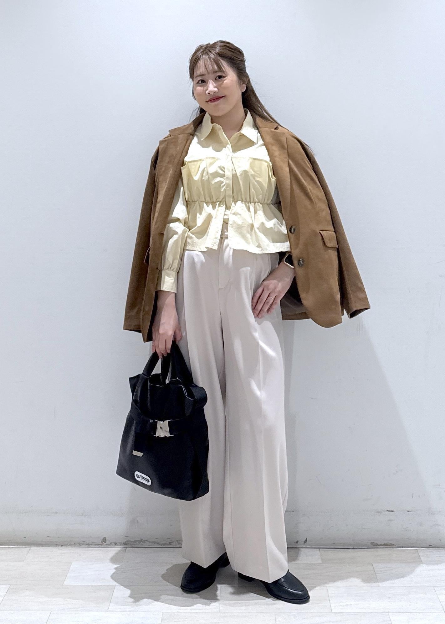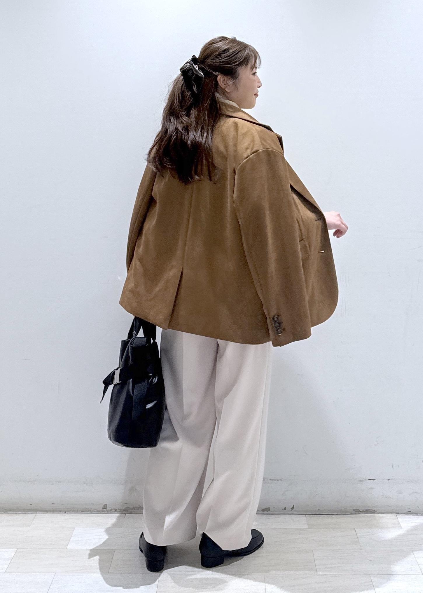 今回は新作で入荷しました、スウェード素材の柔らかいジャケットにシャツと合わせてシンプルに綺麗めなコーディネートにしてみました。