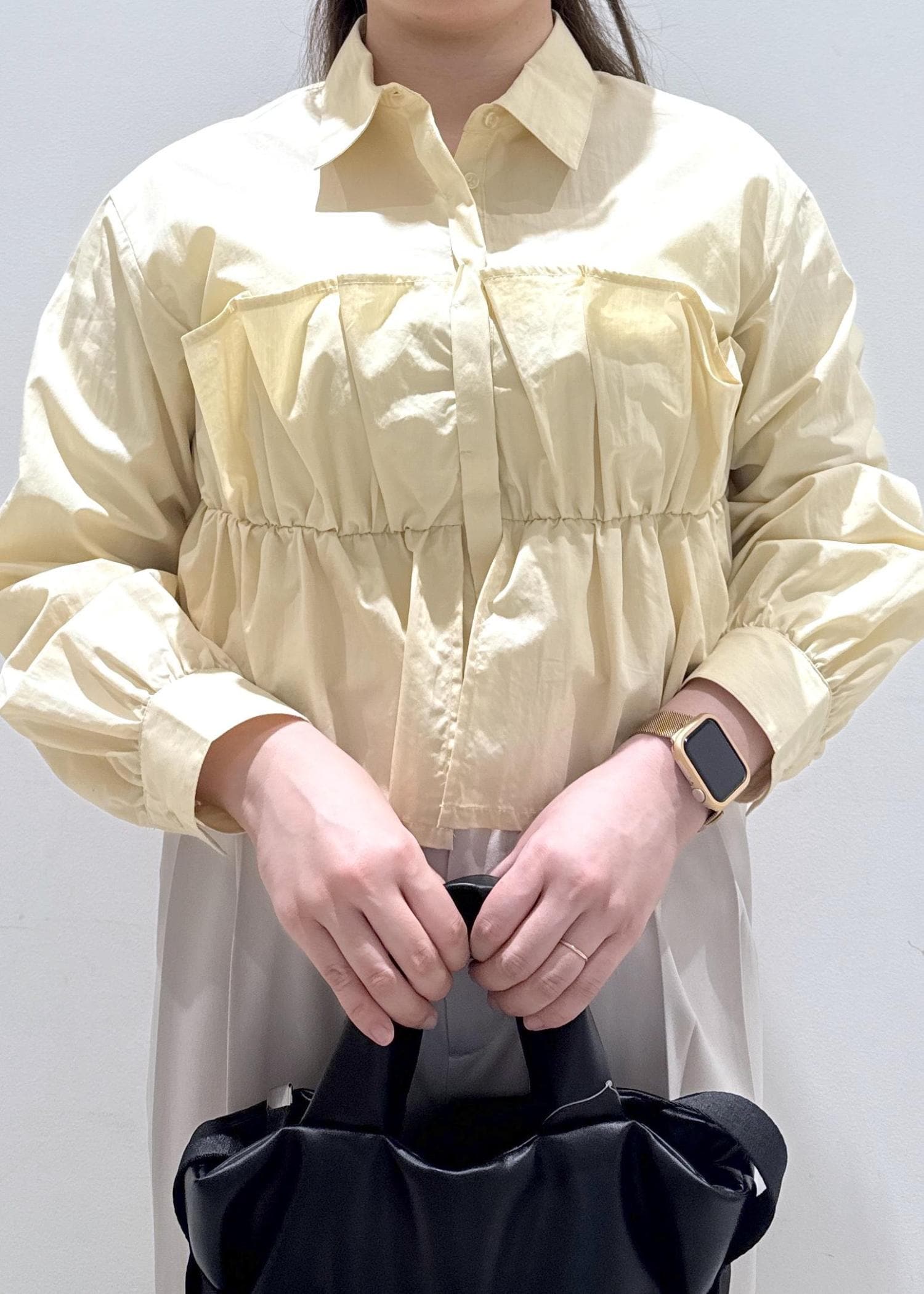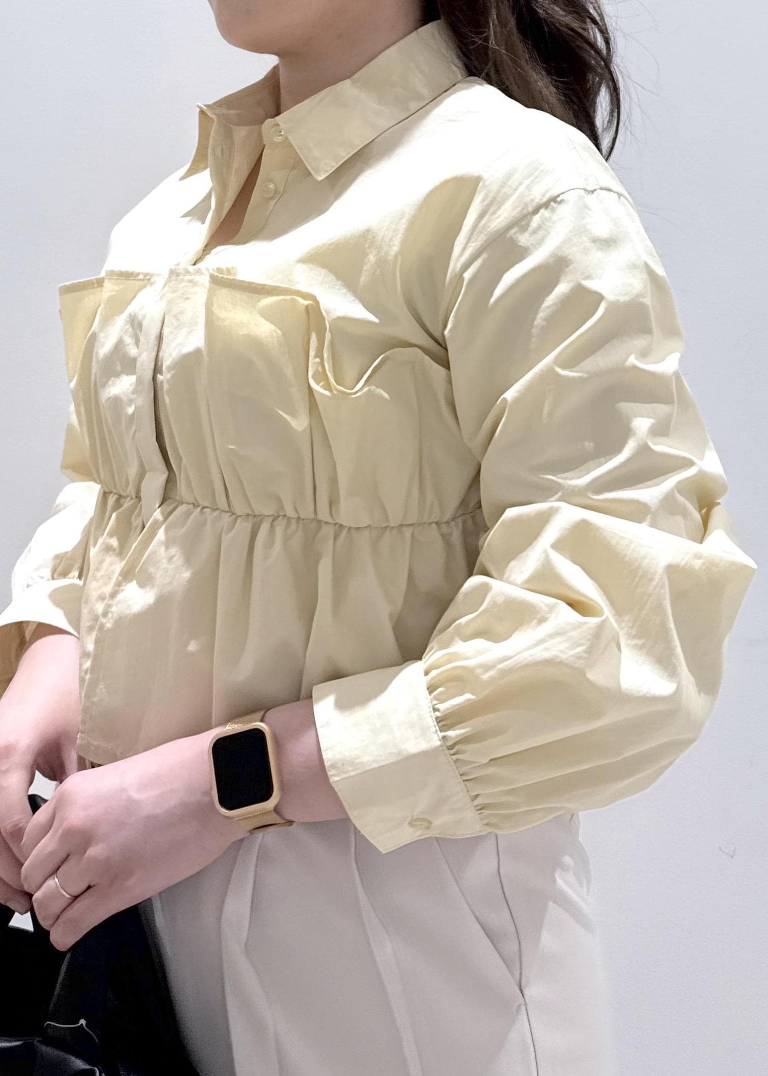 VISビスチェドッキングシャツ/イージーケアクリーム / F¥6,589レビュー身長157cm/Fサイズ着用。ドッキングビスチェのシャツで一枚で重ね着しているように見えて、胸元のビスチェが可愛いです!シャツなので甘すぎず、ボトムスによってはカジュアルにも合わせることができます。ポリエステルのサラサラとした素材感で、少しシワが目立ちますがワッシャー加工が敢えてプレスされているのでシワ感もお洒落として楽しむシャツです。着丈はインしなくてもちょうど良いお腹周りが隠れるぐらいの長さです。
