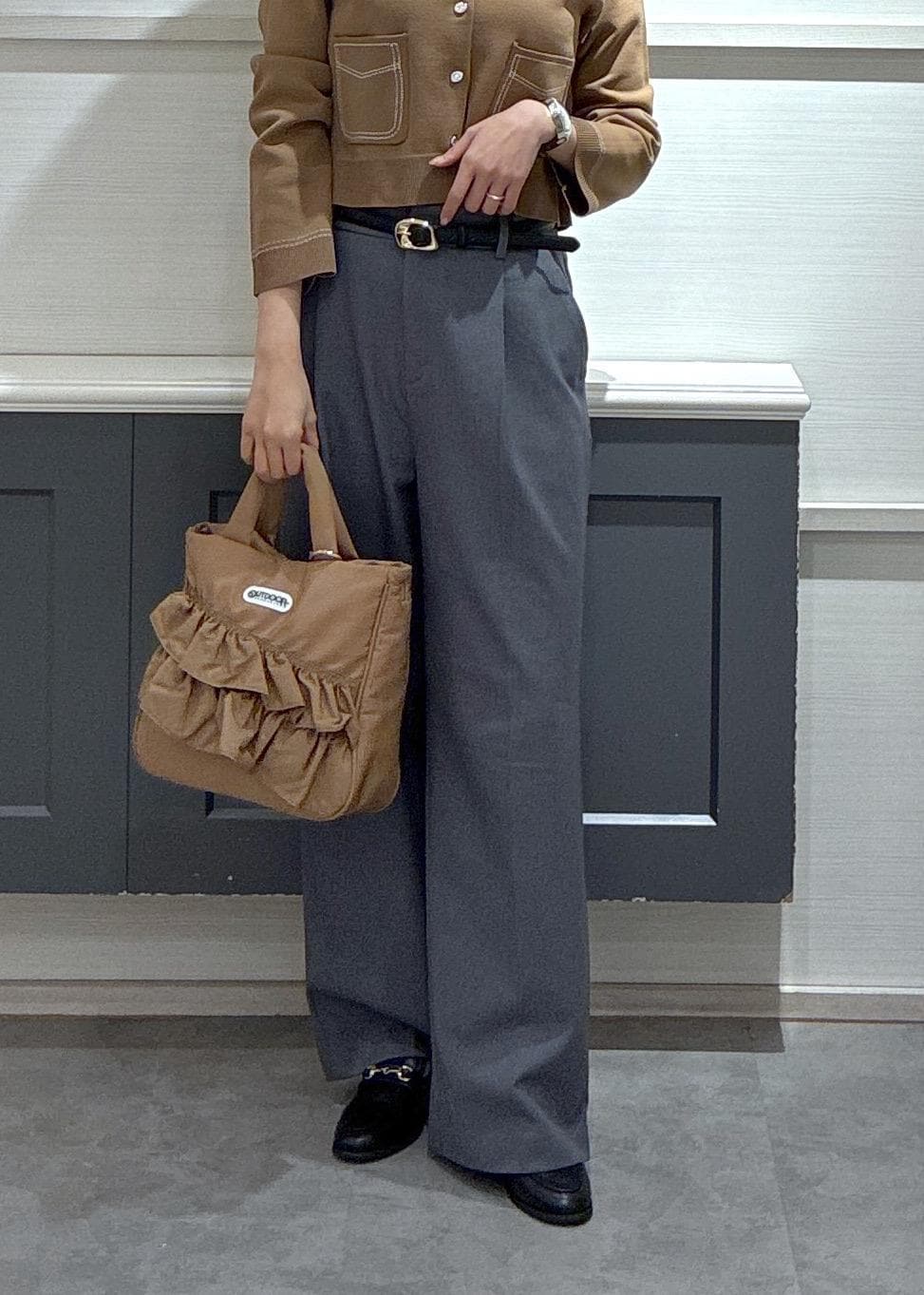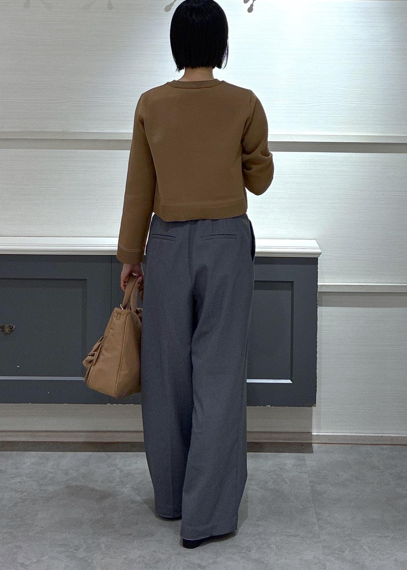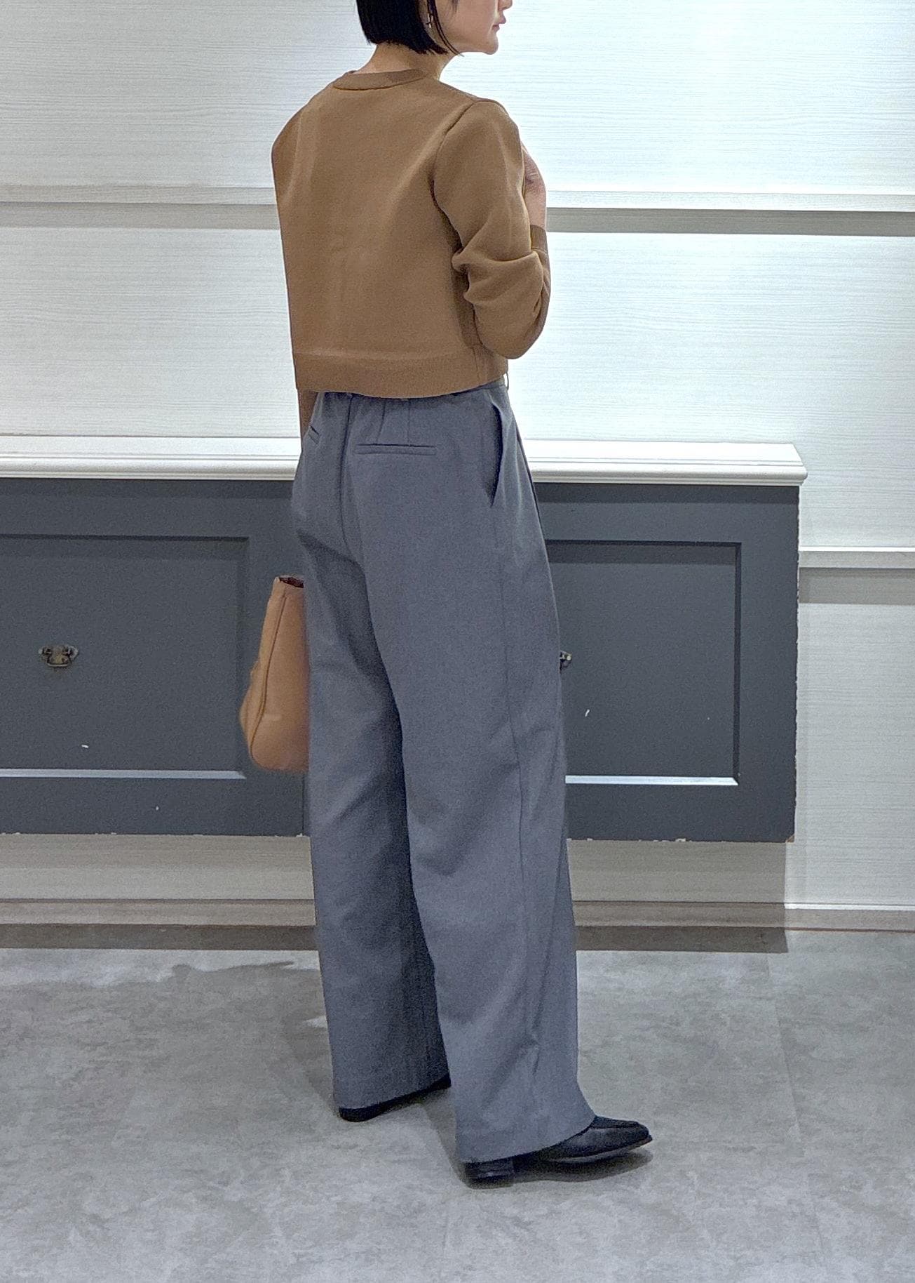 短丈なのでワイドパンツを合わすと脚長効果バッチリです♪