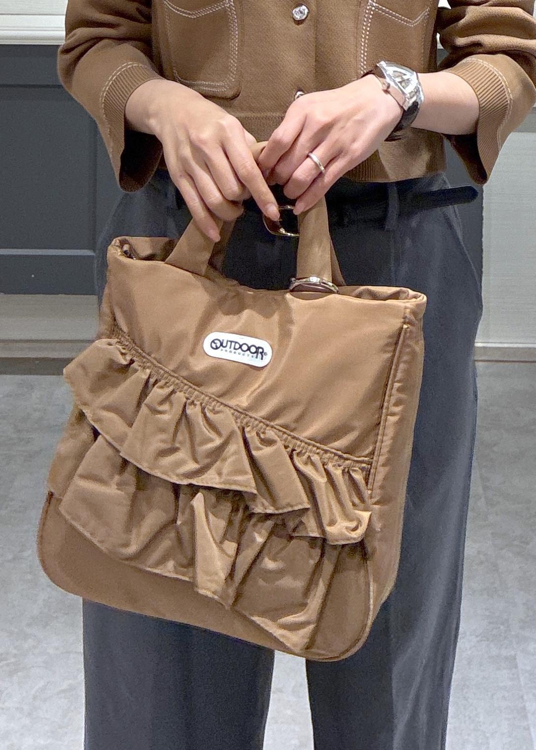 VIS【OUTDOOR PRODUCTS】VIS別注2WAYフリルトートバッグベージュ / F¥8,580レビュー見た目以上にしっかり入り、長財布やスマホはもちろんのことメイクポーチやペットボトルも入るので小旅行や1日のお出かけも安心して使用出来ます♡