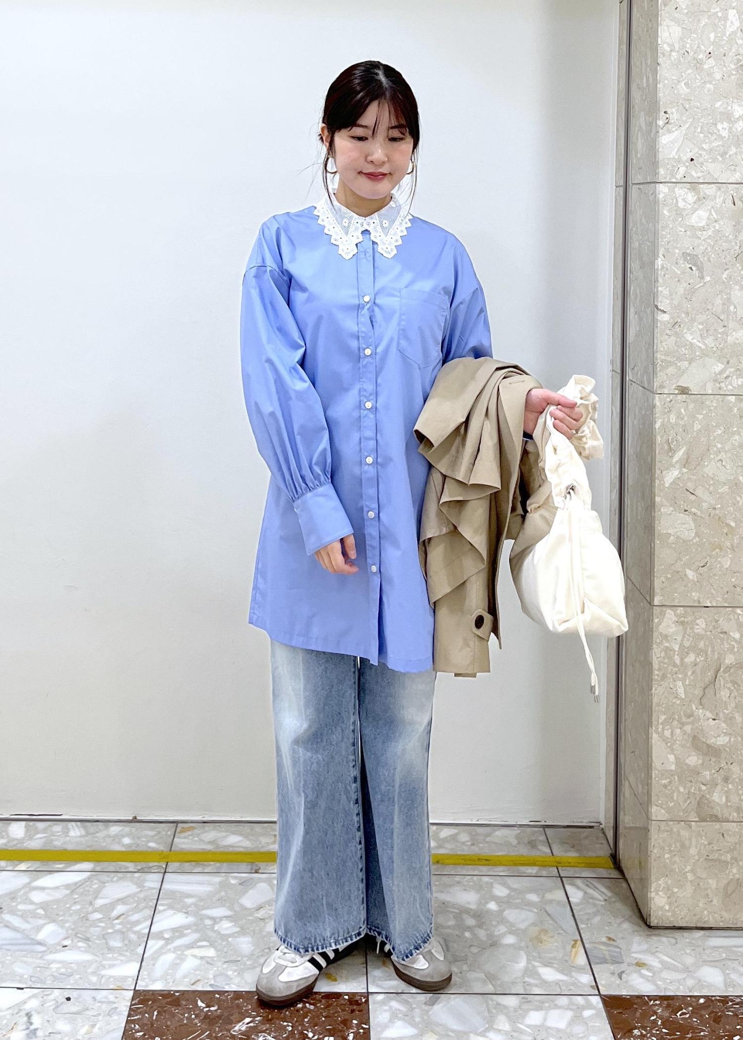 VIS襟レース付きミニ丈シャツワンピサックス / F¥7,689レビューミニワンピース以外にもチュニックとして着て頂くのもオススメです◎