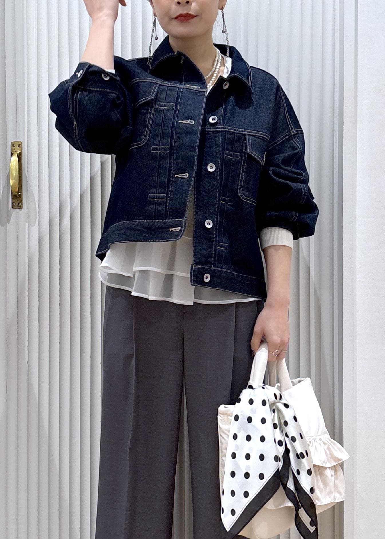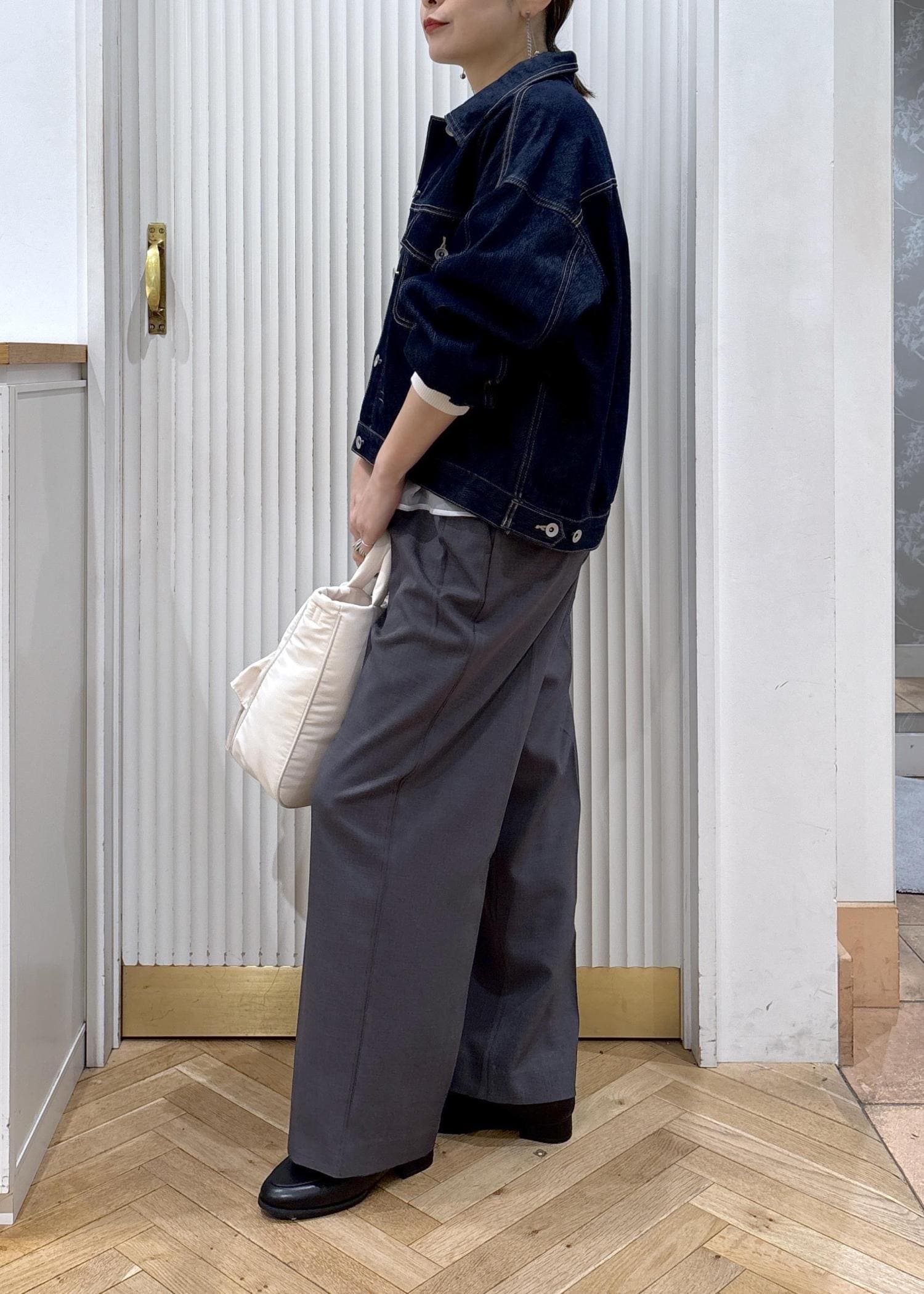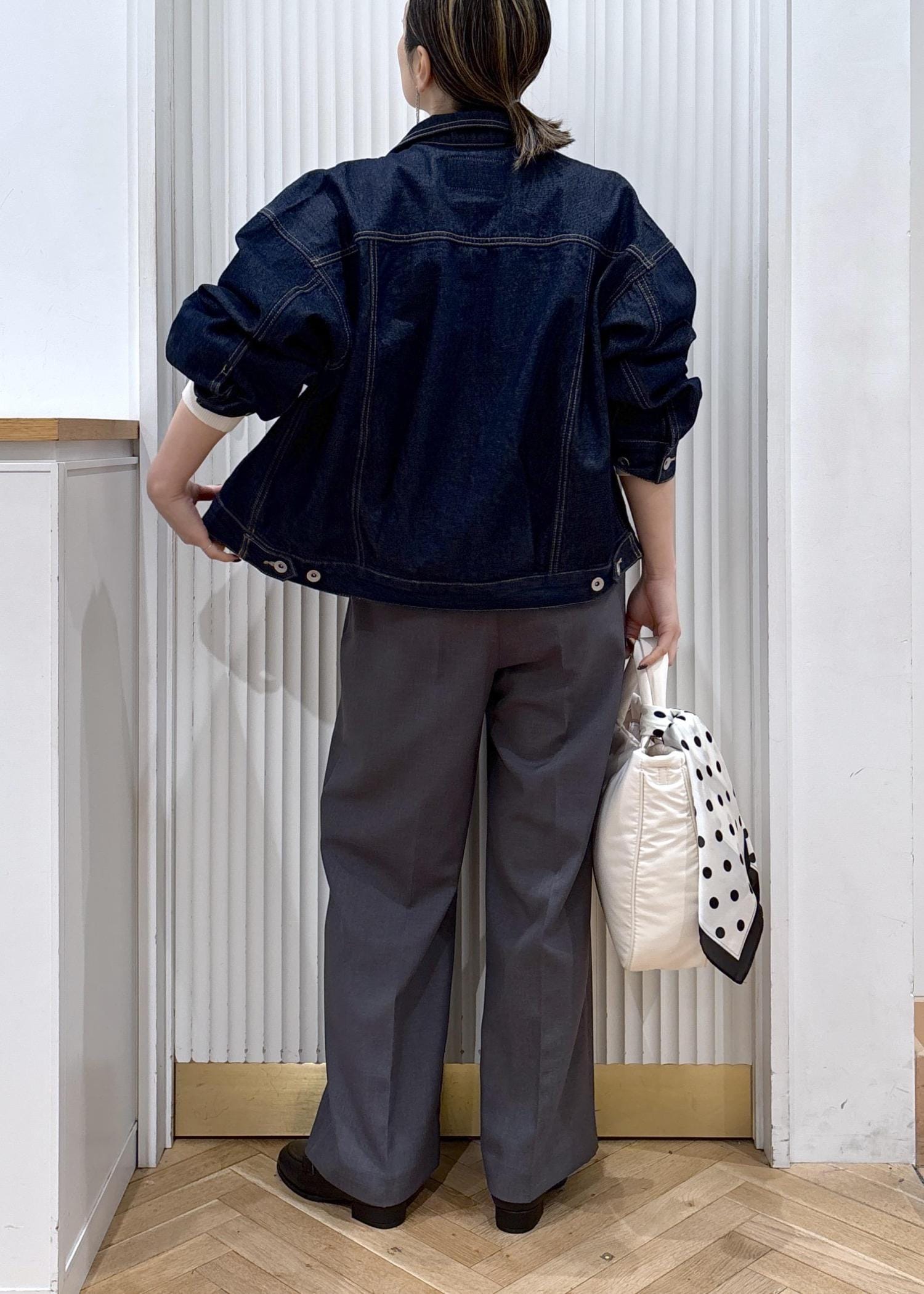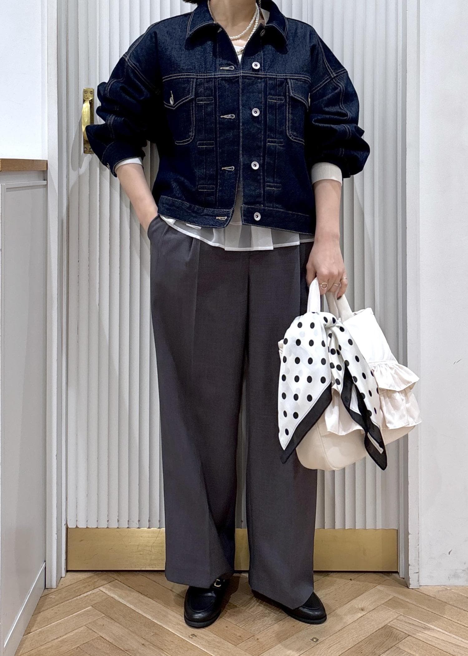 コンフォートシリーズの綺麗目スラックスに合わせてもVISのデニムジャケットならカジュアル過ぎずオトナが合わせやすいカジュアルコーディネートが完成します♫