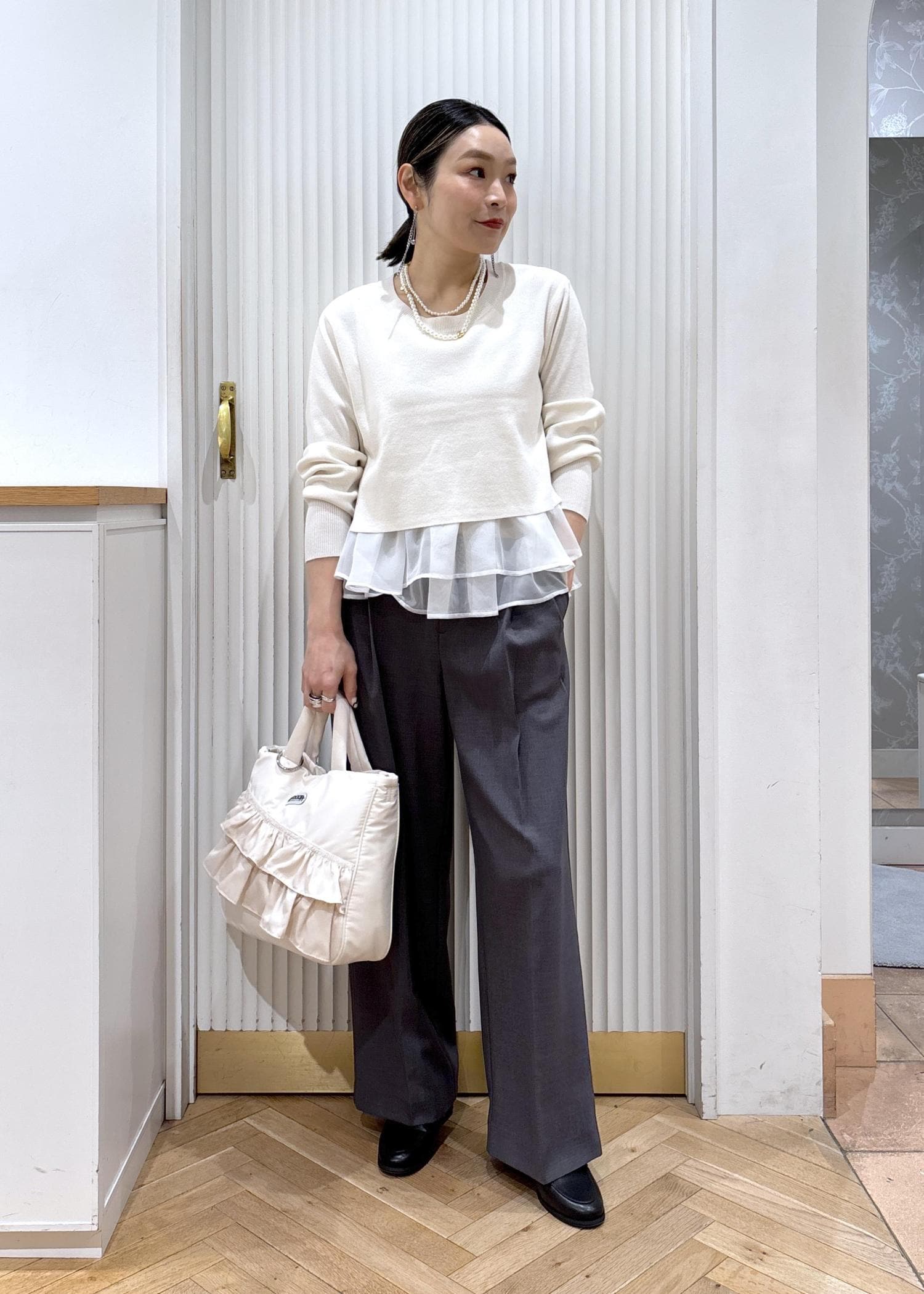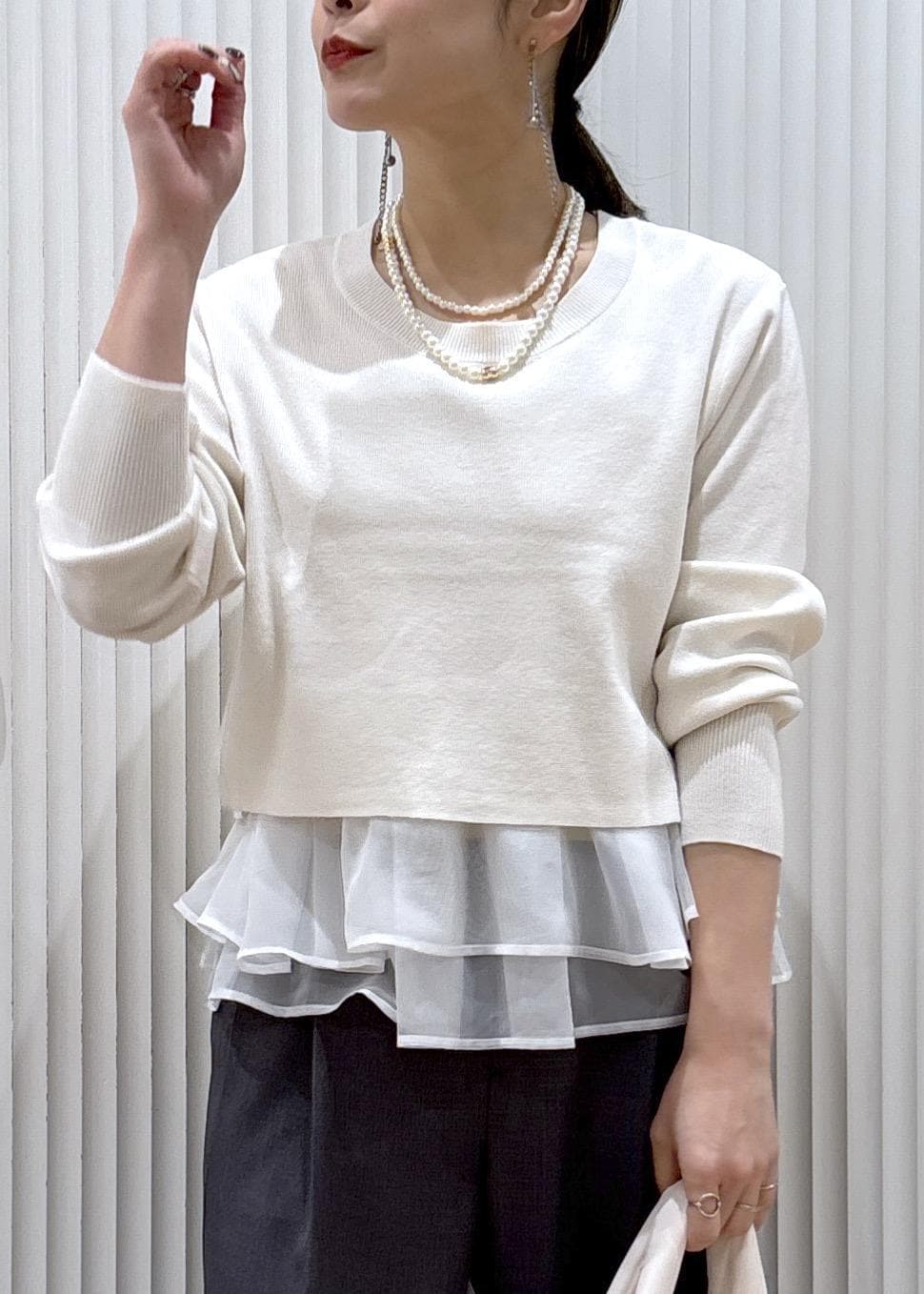 VIS【美得】ペプラムオーガンジードッキングニットプルオーバーキナリ / F¥5,929レビューオーガンジーがドッキングされた1着でレイヤードスタイルが完成するニットプルオーバー。157cmでヒップにかかる長さでした。肌あたりの優しい柔らかいニットにペプラムオーガンジーデザインで華やかに着こなせます。フィット感が少なく、肩まわりがしっかりめの自身でも大変着やすかったです。