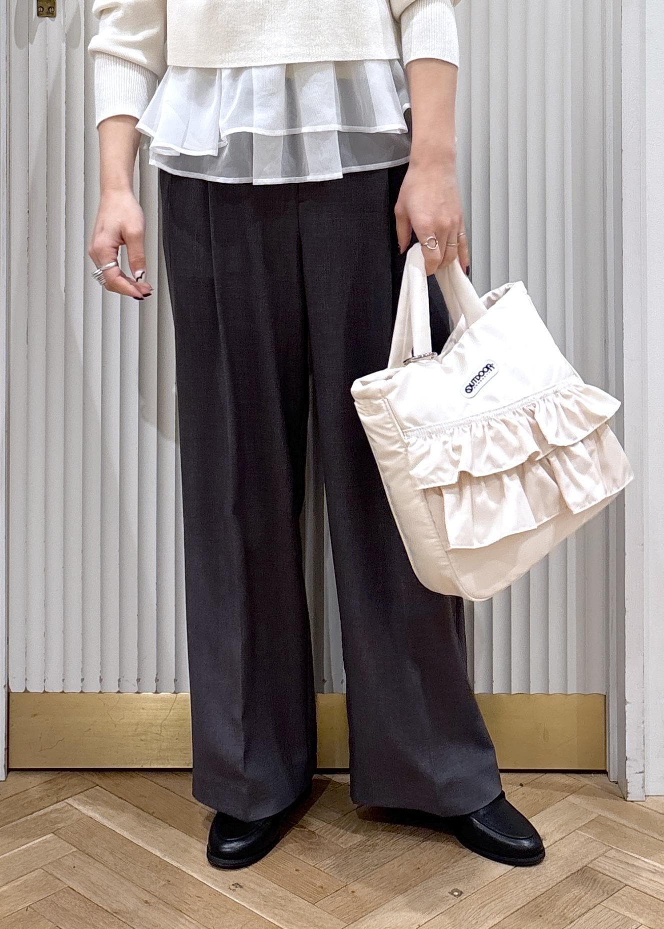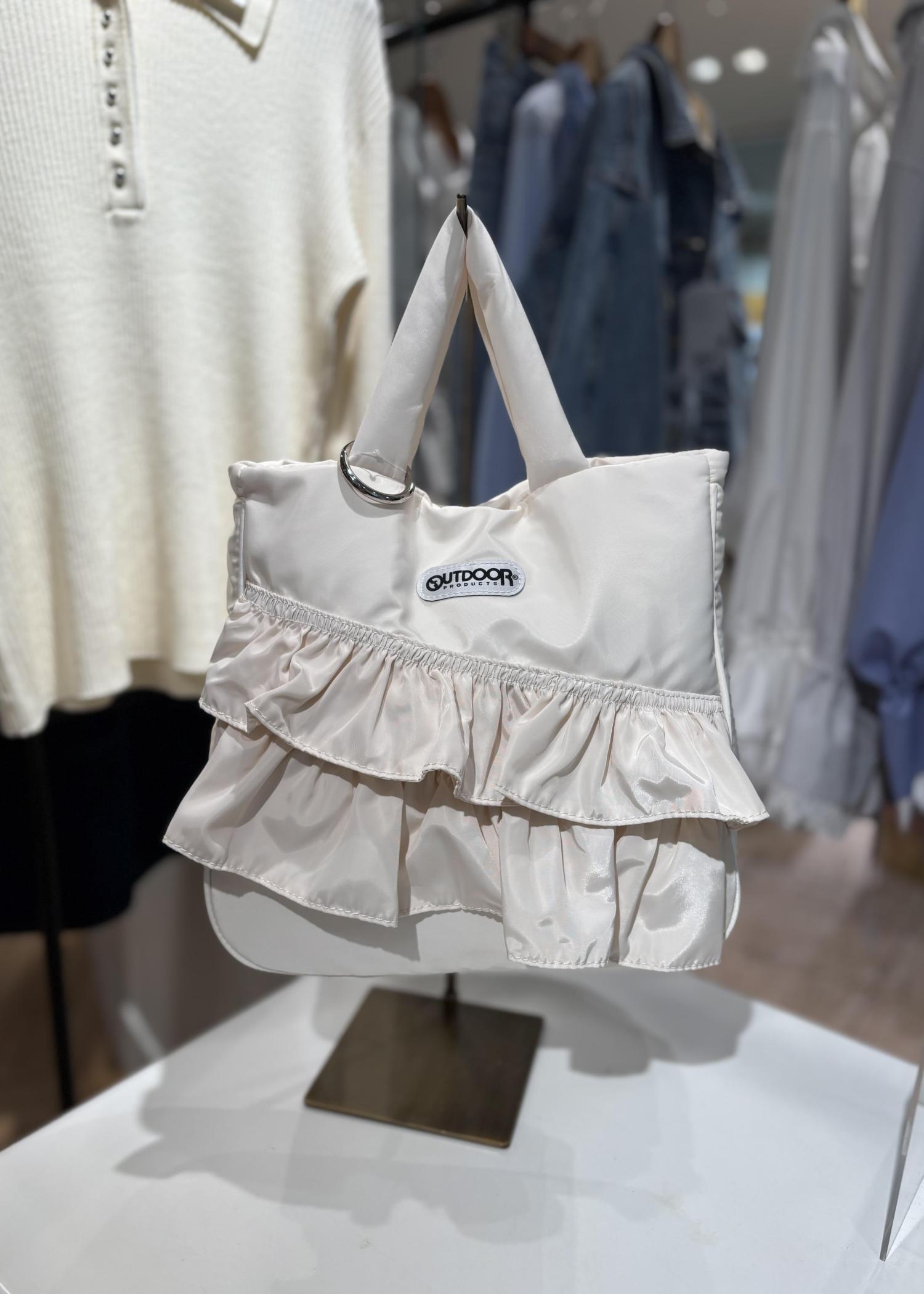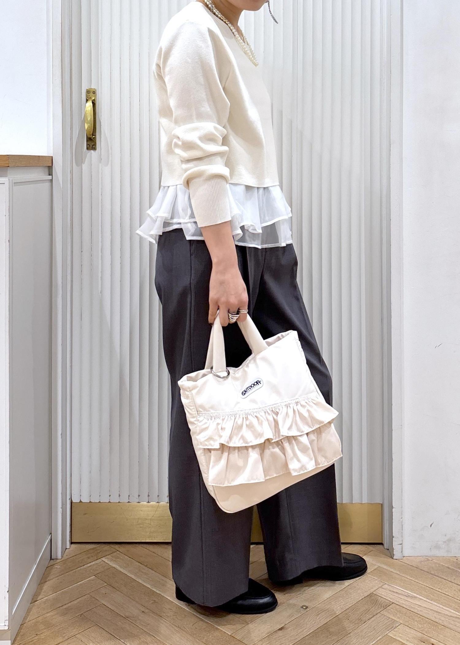 予約VIS【OUTDOOR PRODUCTS】VIS別注2WAYフリルトートバッグキナリ / F¥8,580レビュー500mlのペットボトルやお弁当箱、メイクポーチにiPad等が入るサイズ感です。肩掛けも出来、両手を使いたい時やお荷物が増えた時安心。バッグチャームやキーリング等を付けられるリングが付属でついているのでお好みでバッグに付けることも出来ます。