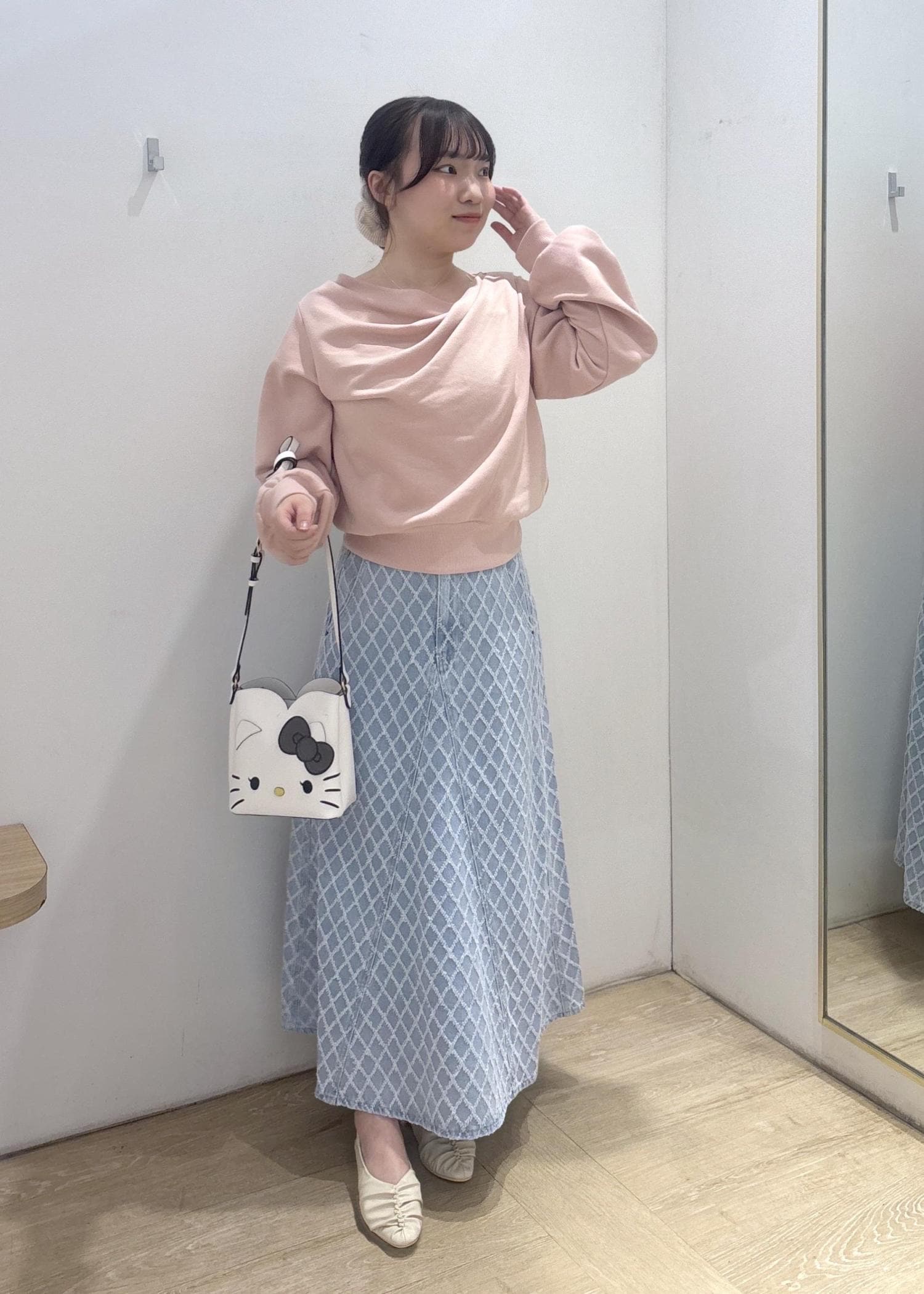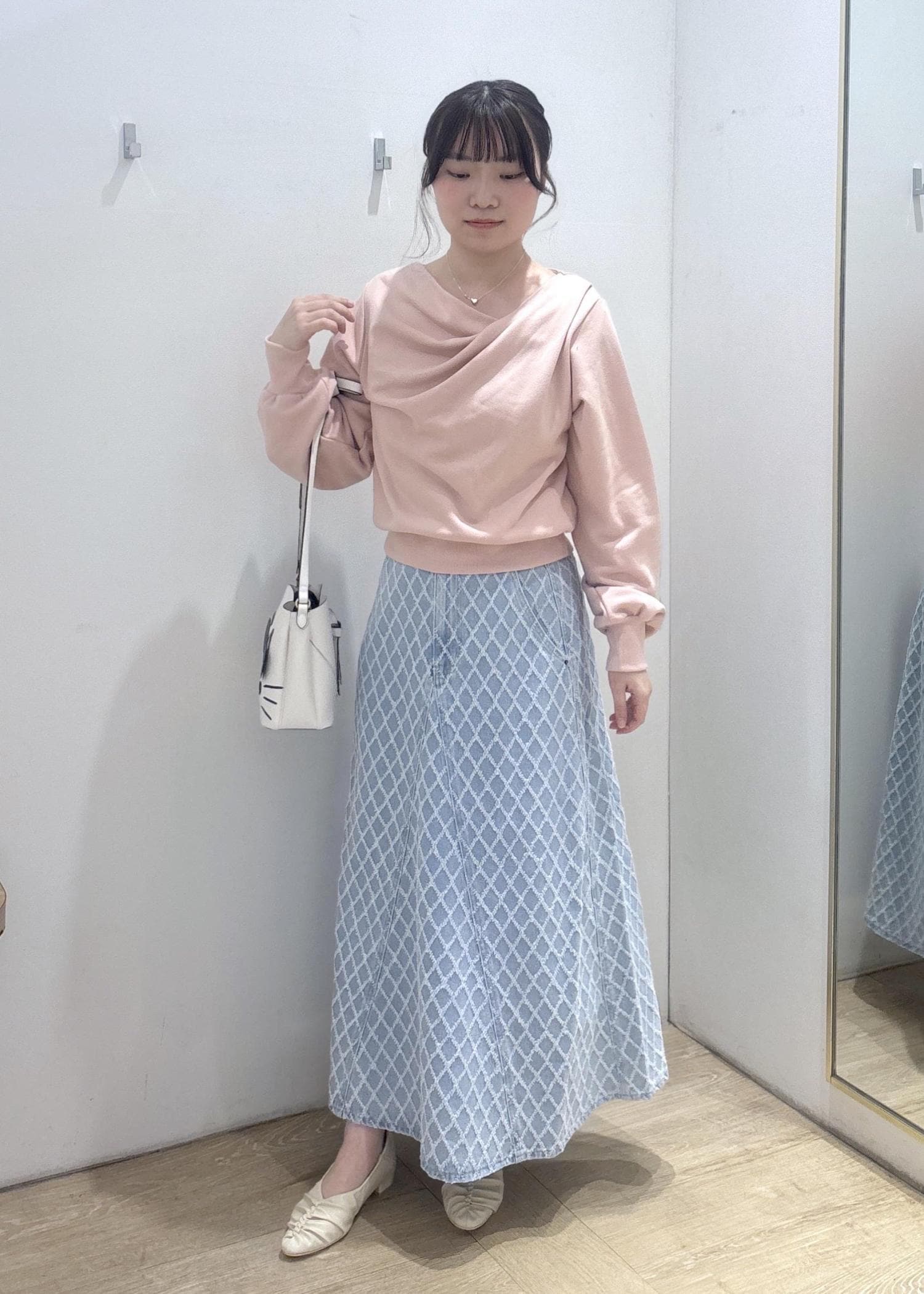 VISドレープスウェットプルオーバーピンク / F¥4,939レビュースウェット素材で軽く柔らかな着心地となっております!首元がスッキリとしていてデコルテラインをキレイに見せてくれるので、骨ストさんには特におすすめです^_^
