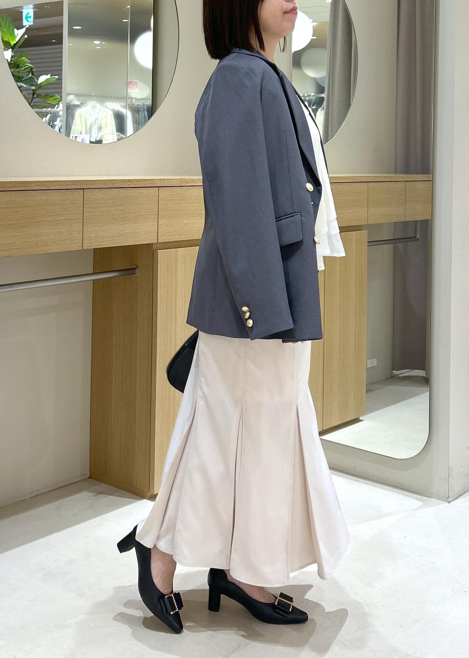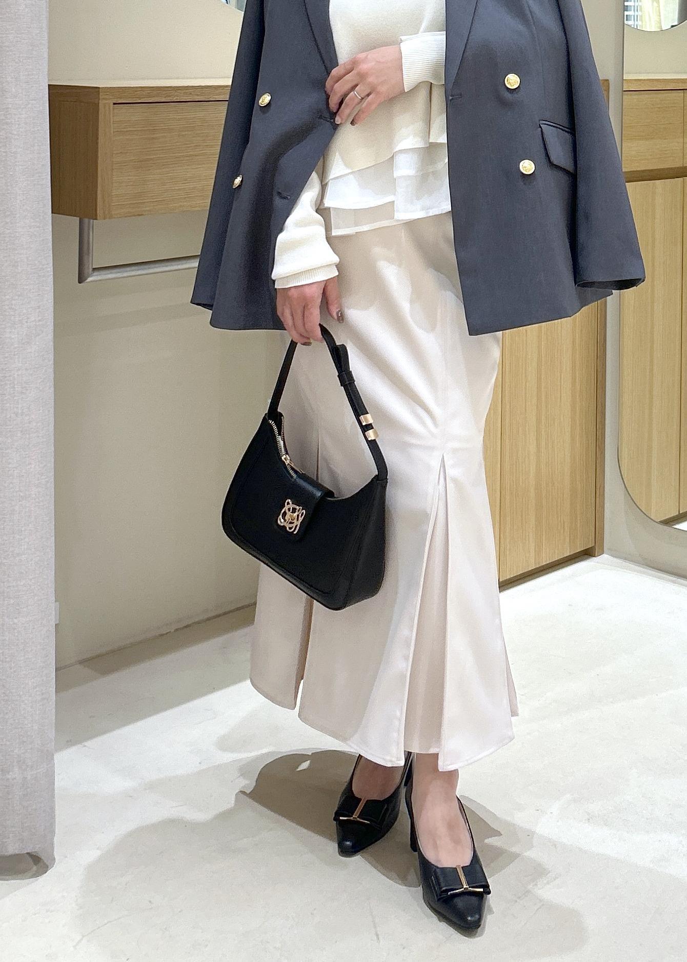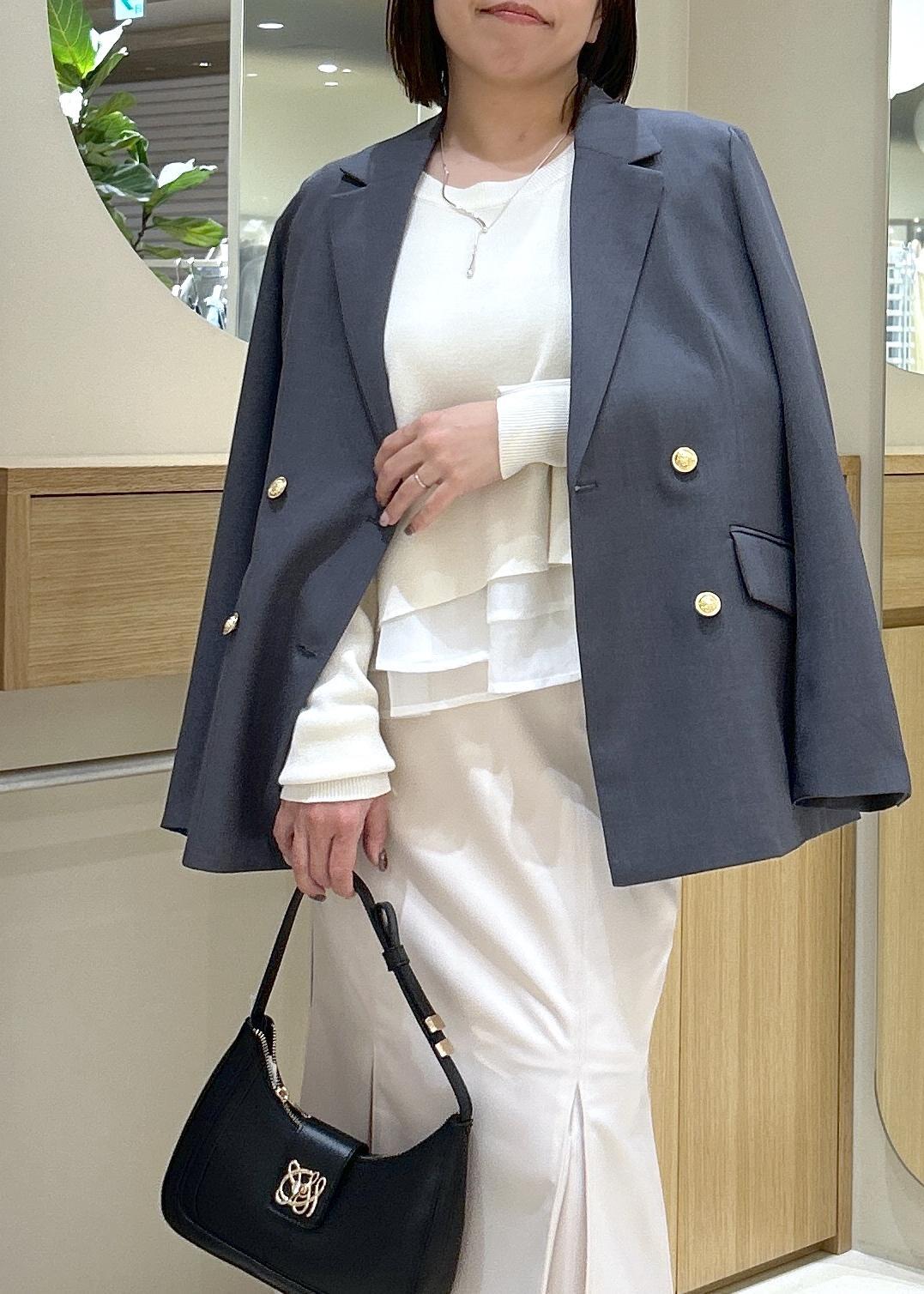 インアイテムはオーガンジーがドッキングになっているニットを合わせて上品さを出し少し柔らかい印象に。