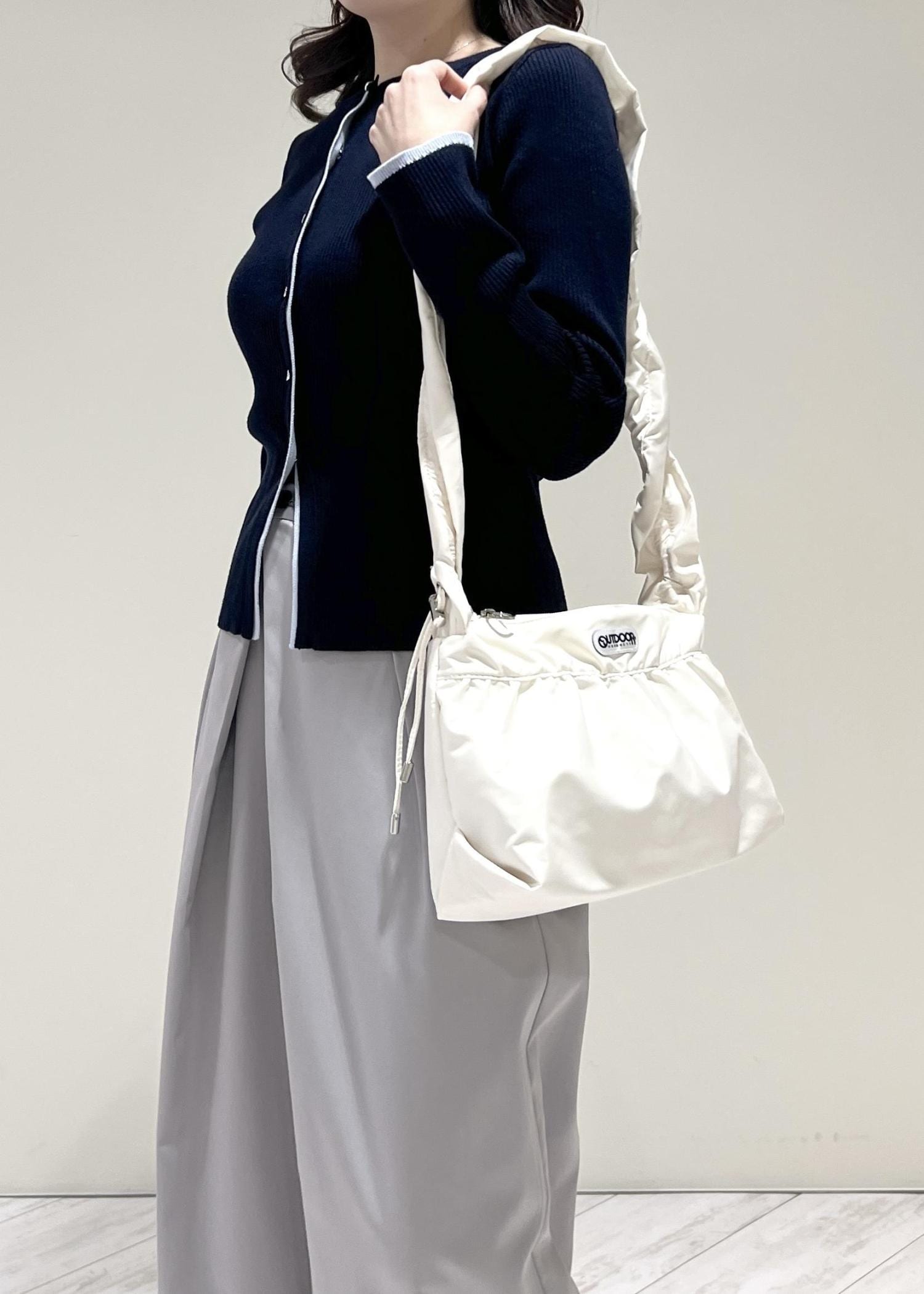 VIS【OUTDOOR PRODUCTS】VIS別注フリルショルダーバッグキナリ / F¥7,480レビューショルダー部分が調整可能なので気分で肩掛けにもショルダーにもなります!500mlのペットボトルや長財布は余裕で入り、プラスで荷物が入ります◎