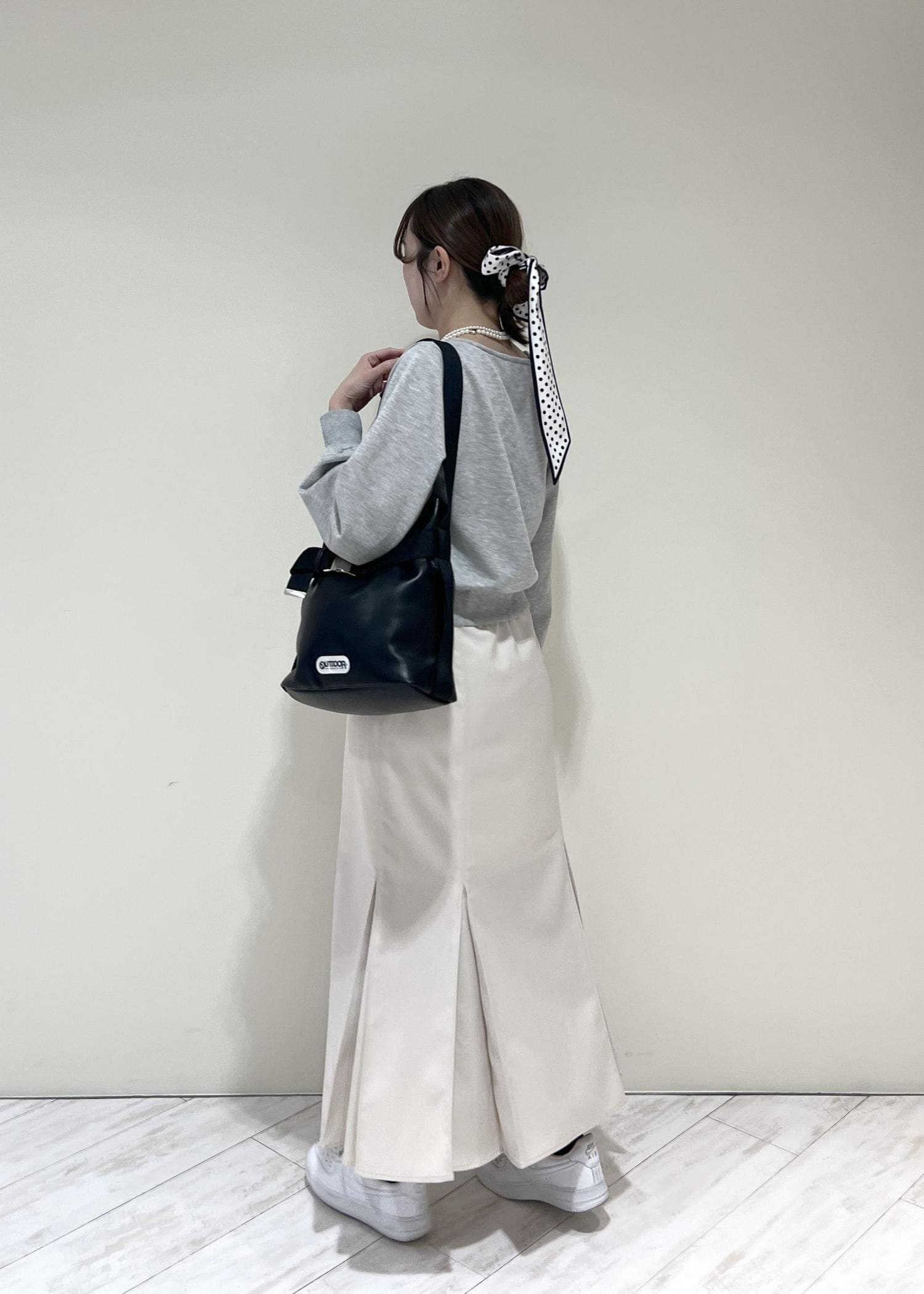 VISボックスプリーツマーメイドスカート/イージーケア・防シワベージュ / L¥6,589レビュー164cm、Mサイズだとおしり周りが気になったのでLサイズ着用。着丈はくるぶし上でスニーカー等ぺたんこ靴でもバランス良く履けます◎