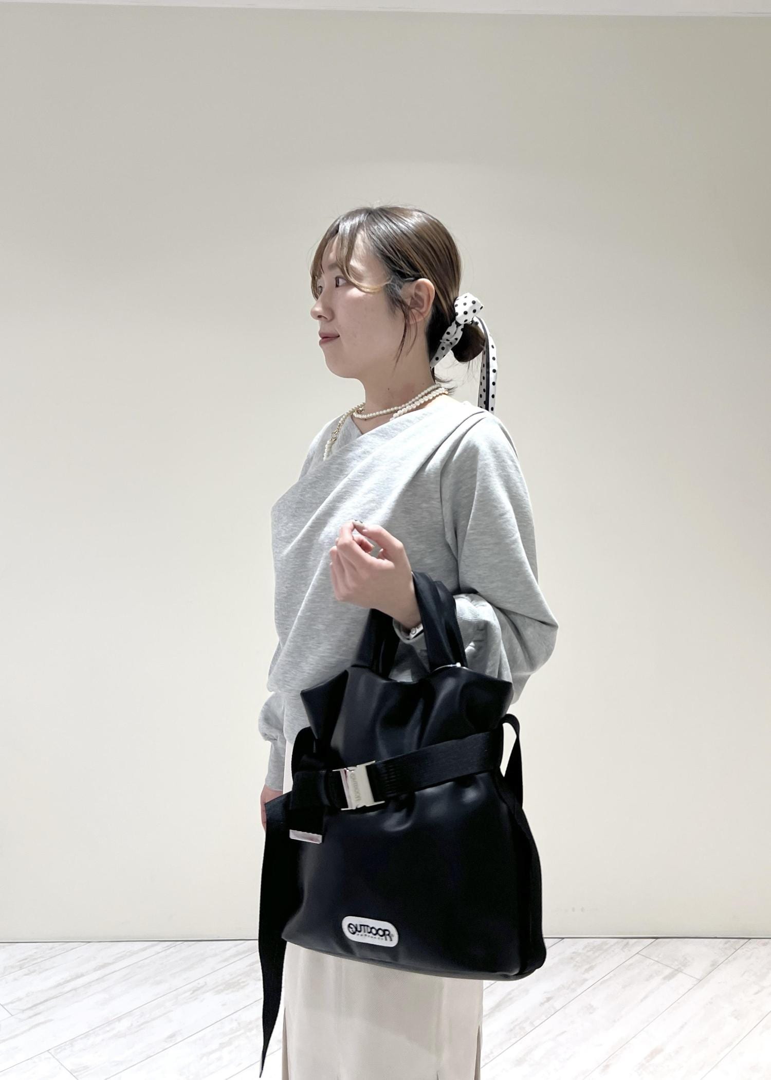 VIS【OUTDOOR PRODUCTS】VIS別注2WAYベルト付きパデッドトートバッグブラック / F¥8,580レビュー長財布やペットボトルが余裕で入るサイズ感でした。マチもあるので+aで荷物が入ります◎
