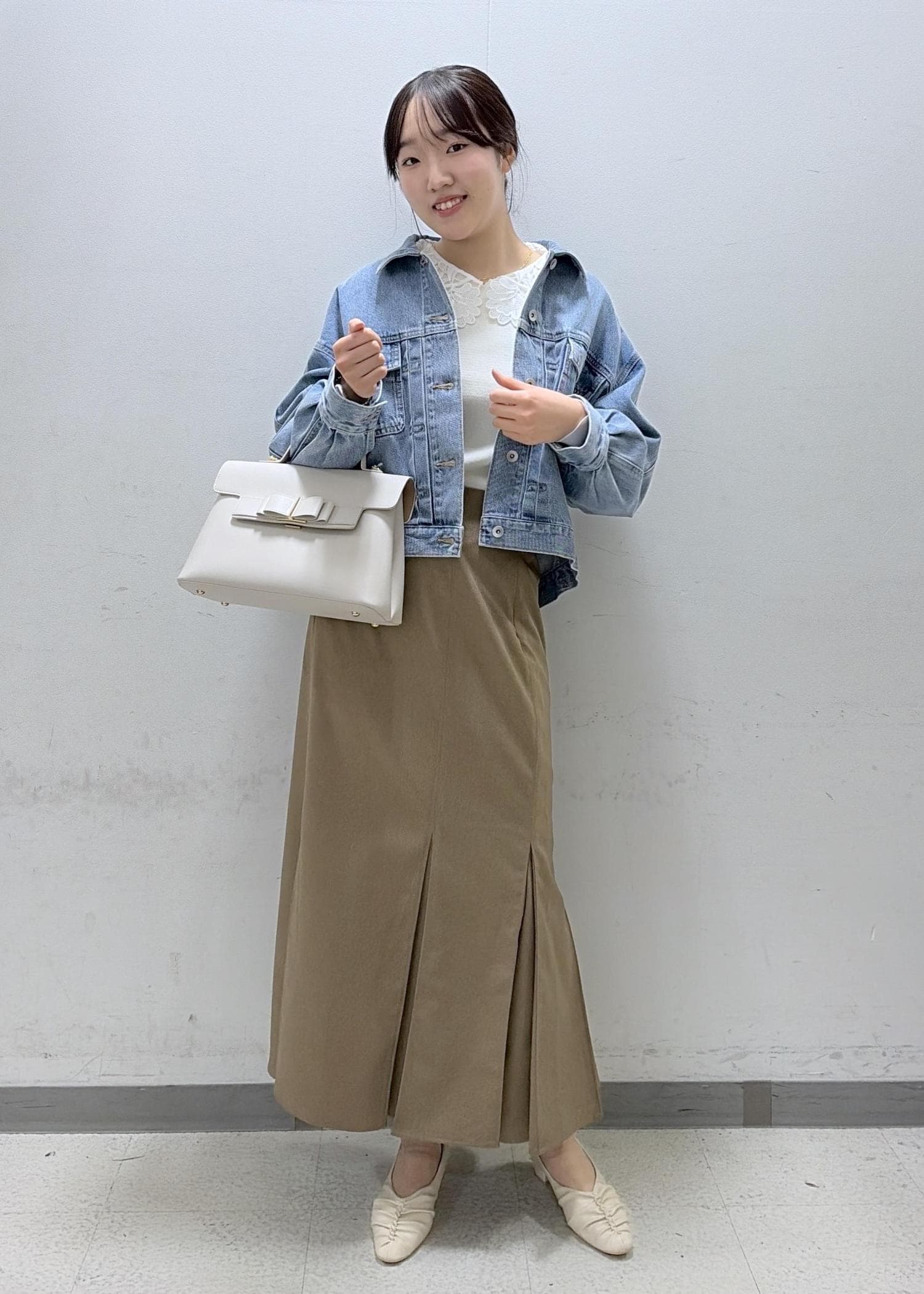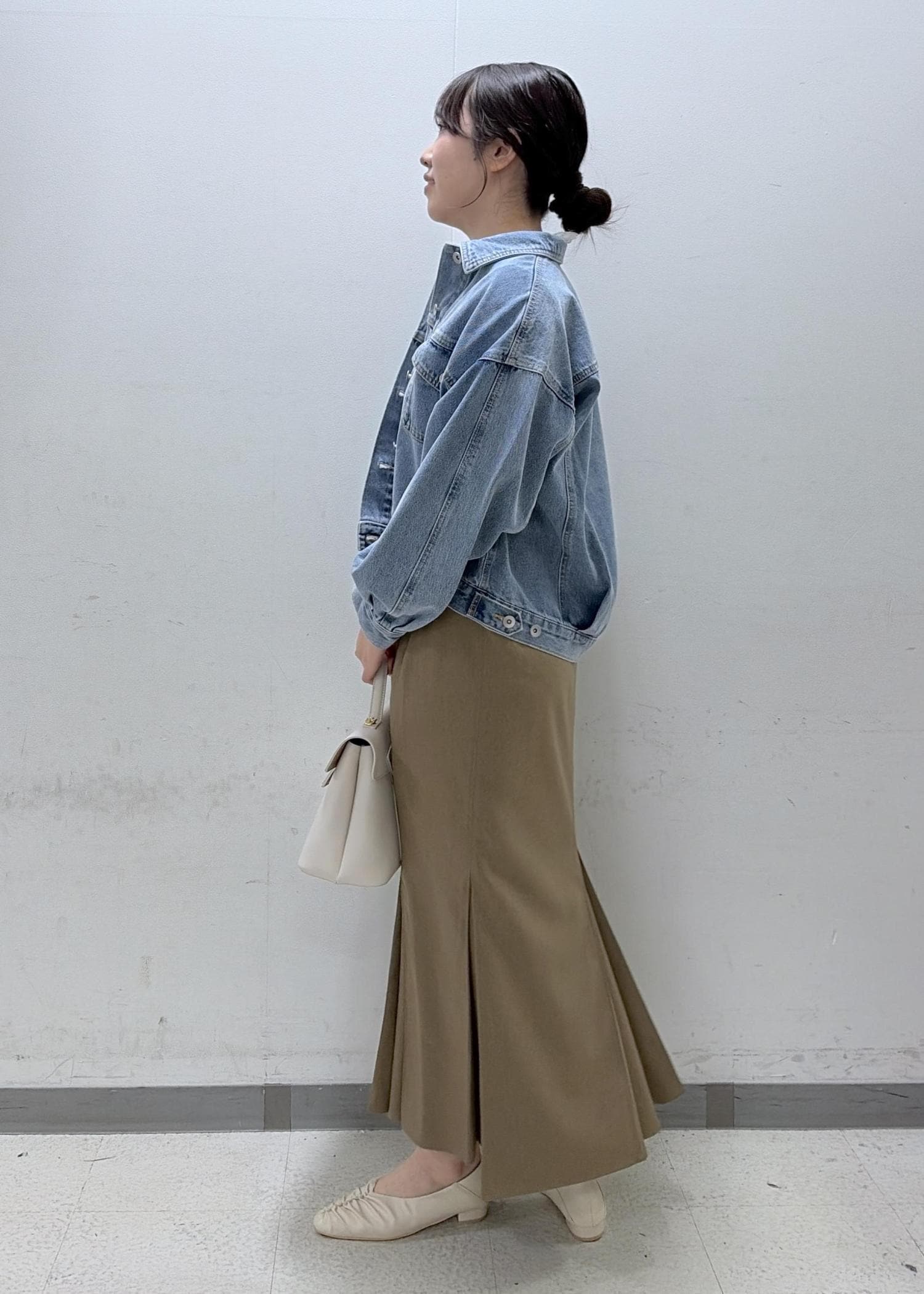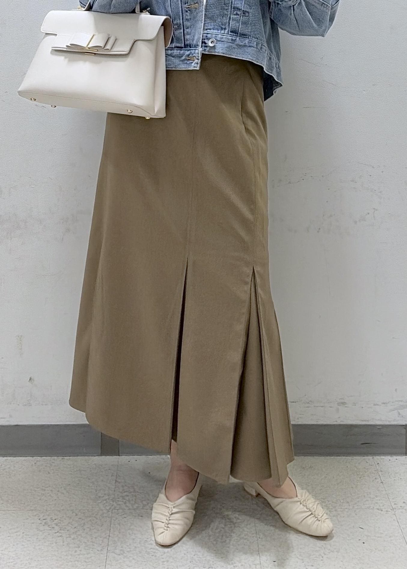 VISボックスプリーツマーメイドスカート/イージーケア・防シワブラウン系 / L¥6,589レビュー167cでLサイズ着用。丈感はふくらはぎ真ん中辺りまであり、ウエストは厚めのニットをインしても余裕があるような大きさです!