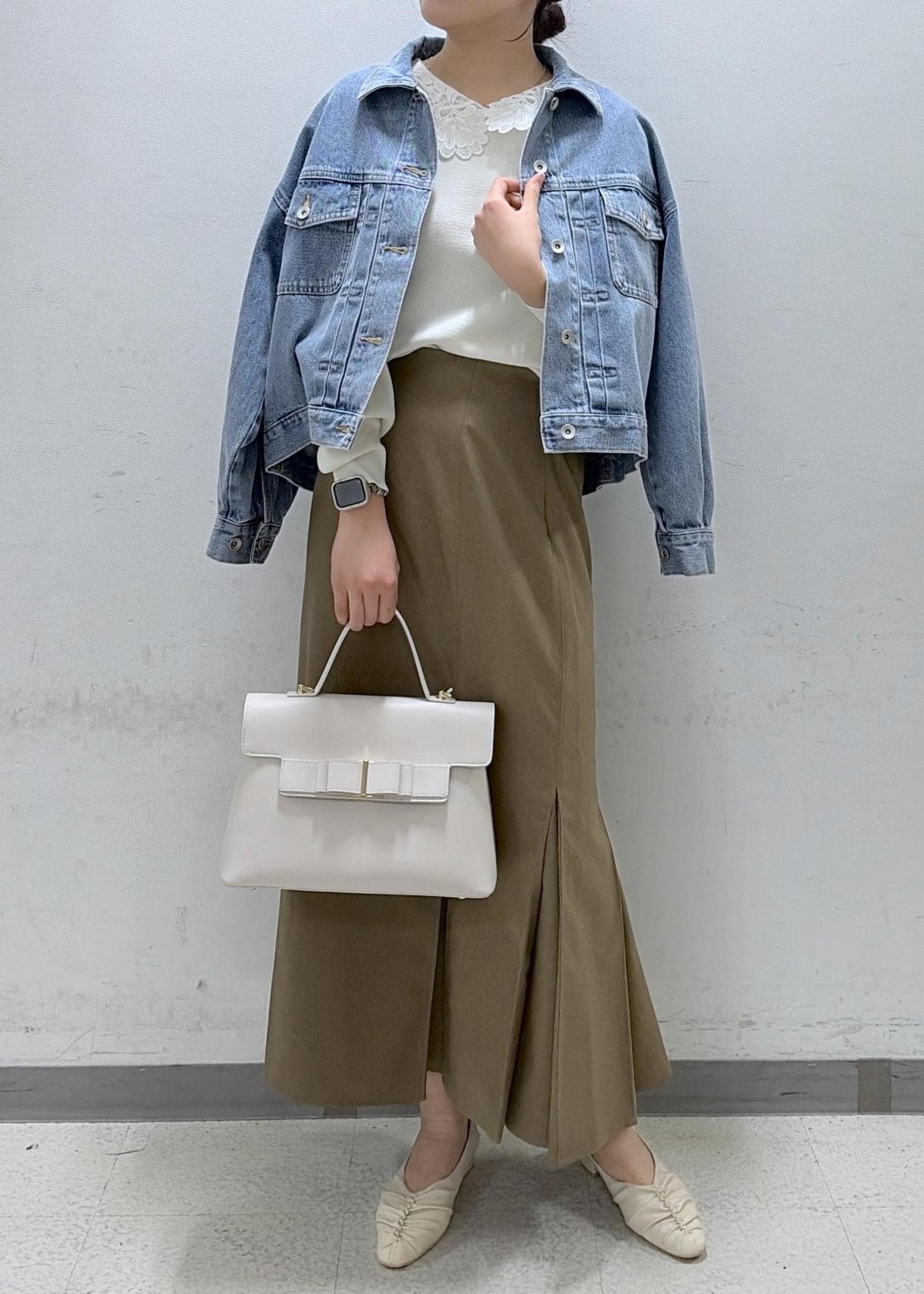 襟元のレースが春らしく女性らしいデザインポイントです!!