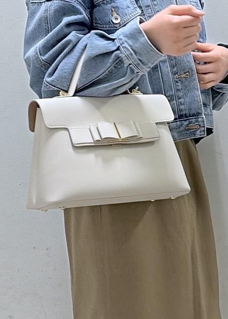 VISリボンベルトワンハンドルバッグ/軽量・2WAYオフホワイト / F¥6,919レビューフロントのリボンデザインが大人かわいい♡