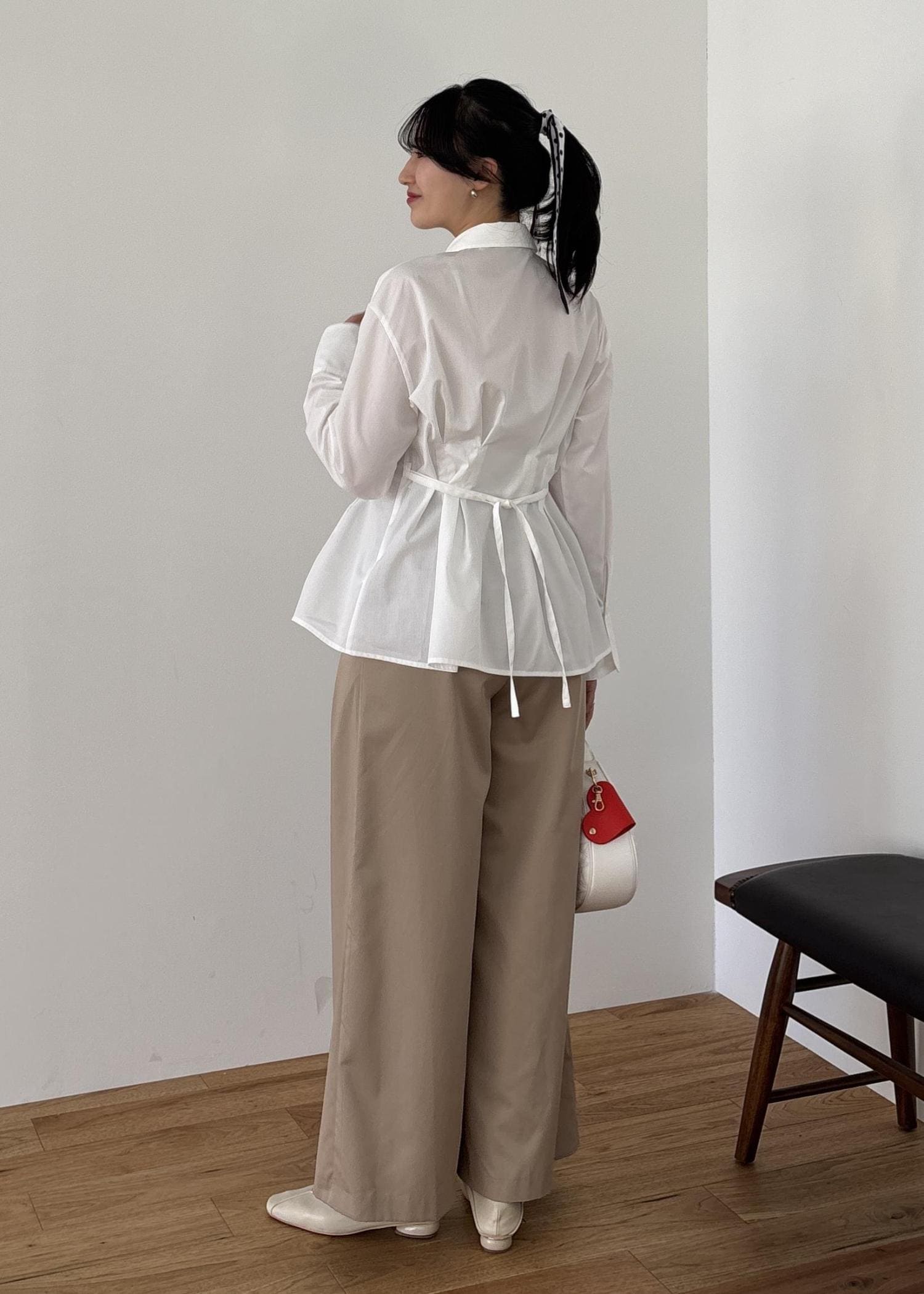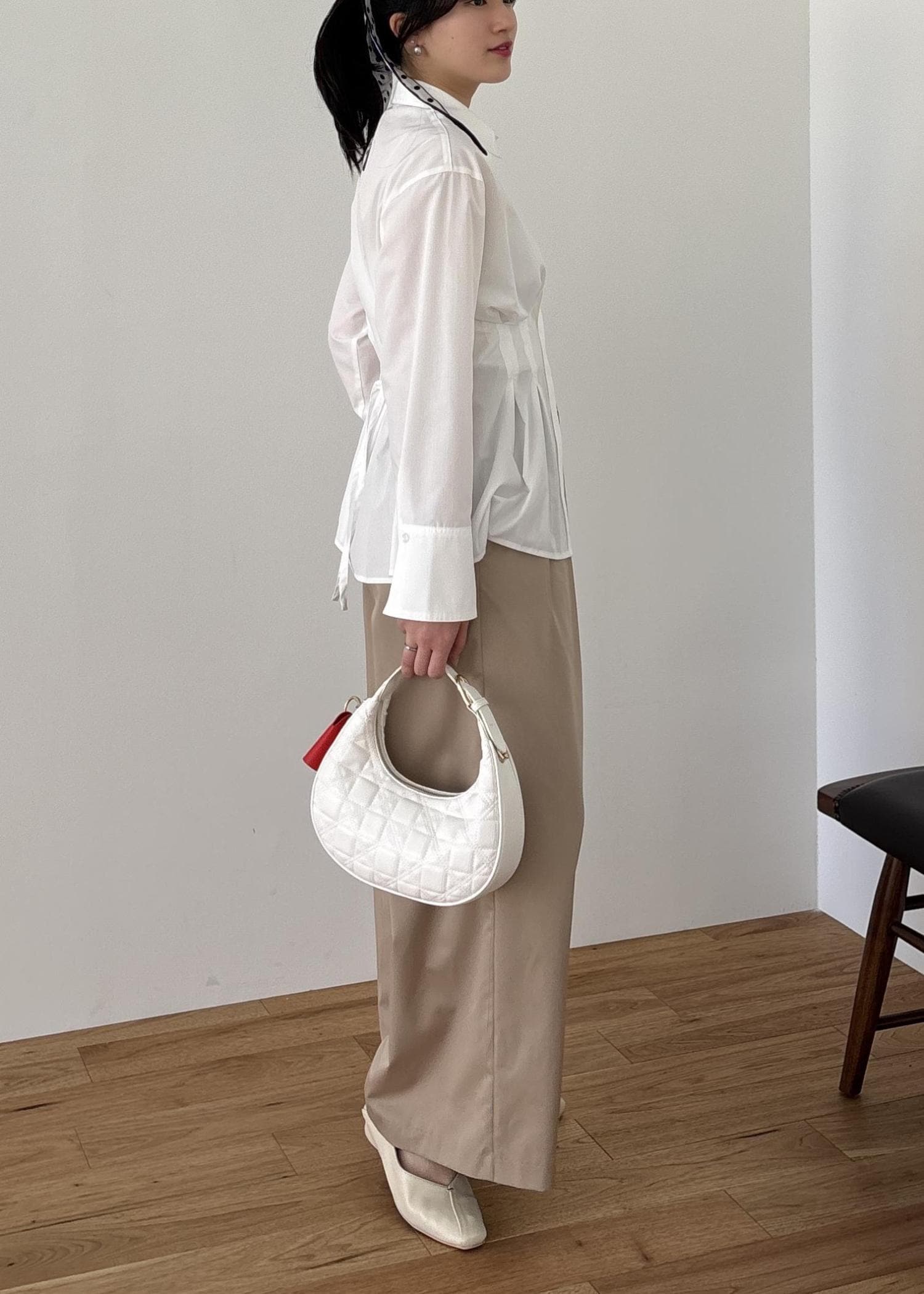 タックがしっかり入っていて腰回りスッキリ着られます。またハイウエストでスタイルアップにも◎ -