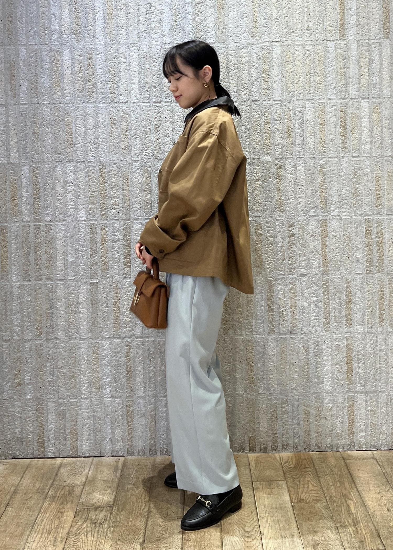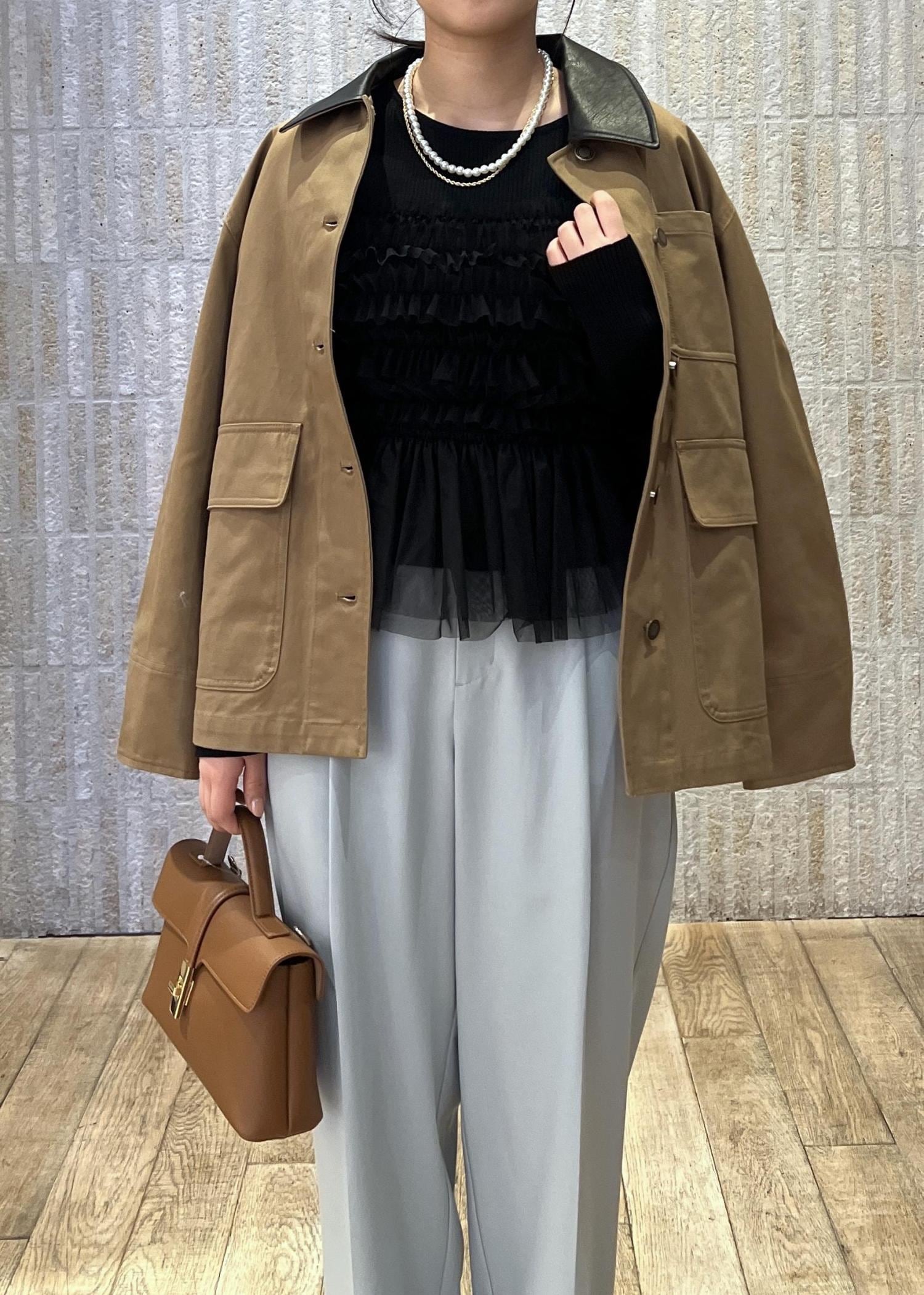 158cmでヒップが隠れる丈感。カジュアルにも甘いスタイリングにも万能に使える春アウターです。 -