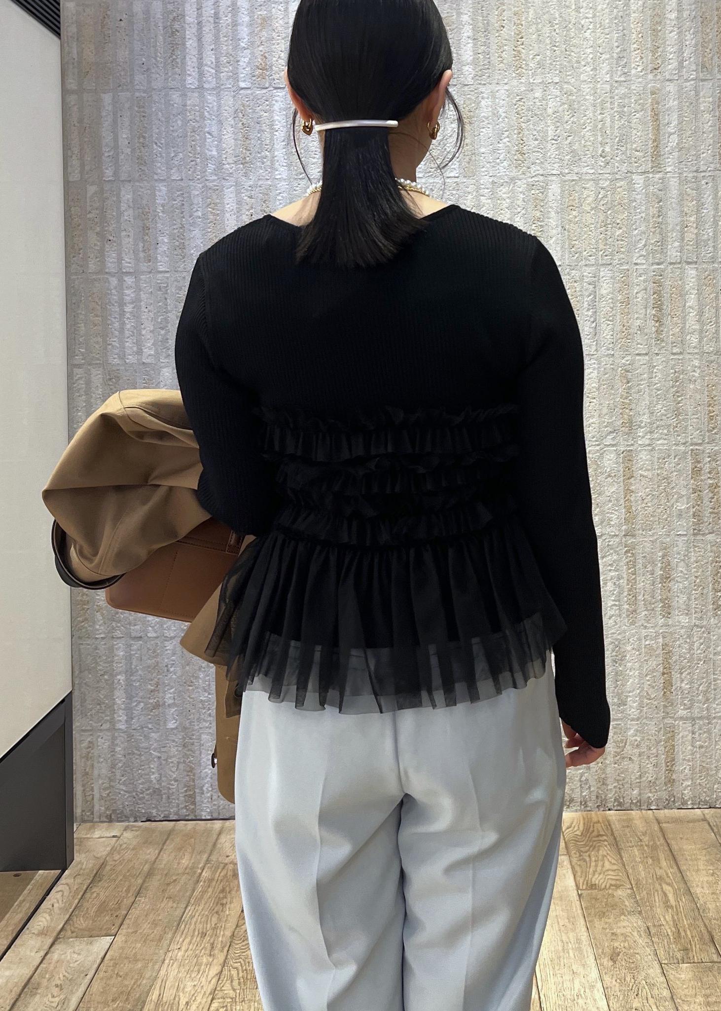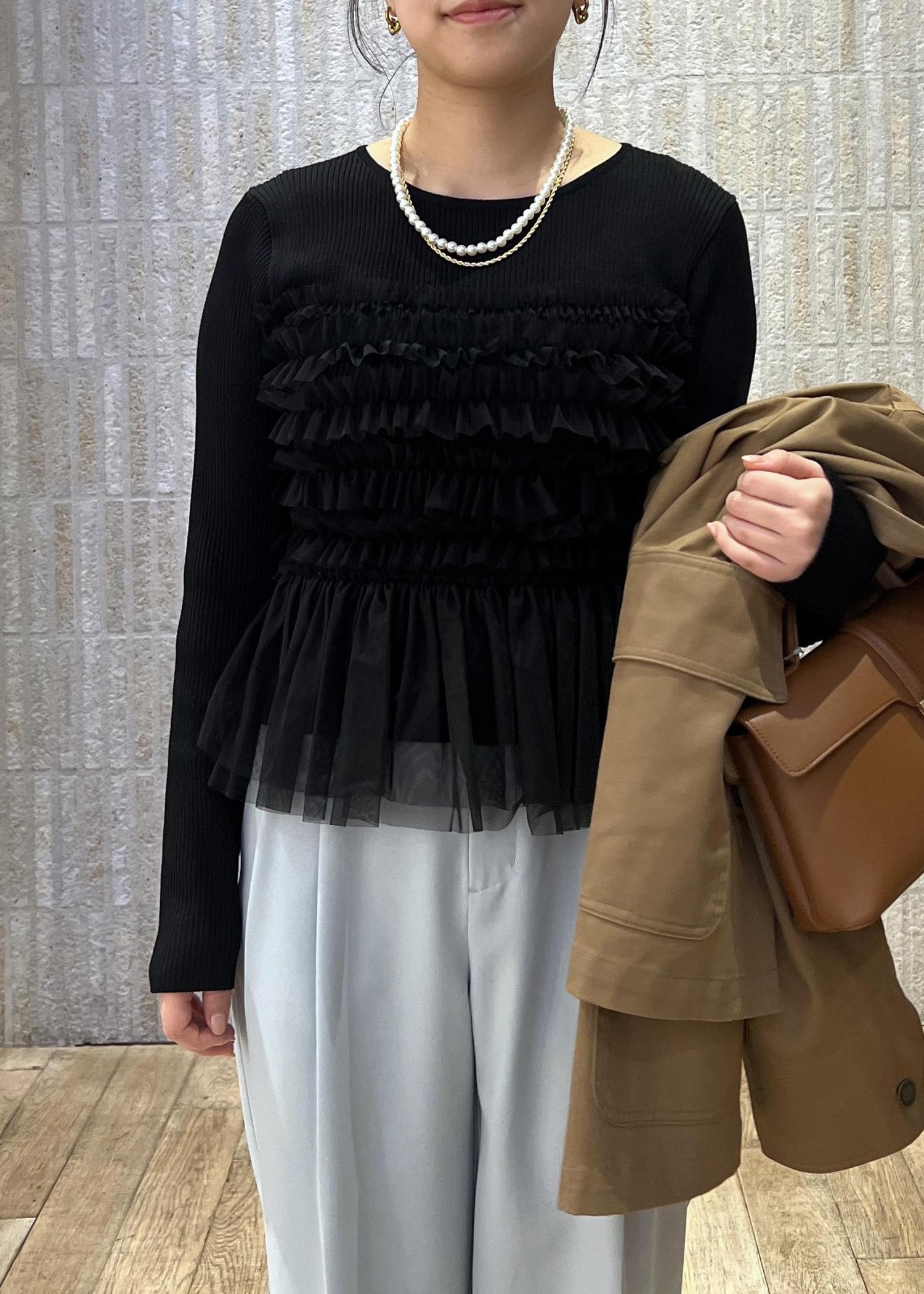 VISチュールドッキングニット/イージーケアブラック / F¥6,589レビュー骨ストで上半身に厚みがある私でも着痩せしたトップス。派手すぎないチュールが上品な印象に。身体のラインを拾いすぎず着心地がいい生地感です。