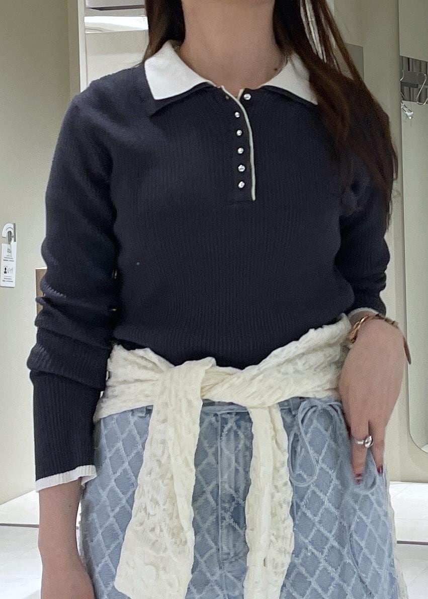 VISダブルカラーポロニットトップスチャコール / F¥5,489レビューダブルカラーの配色がかわいいポロニットです。袖口も襟と同じ配色になっており、コーデのアクセントになります
