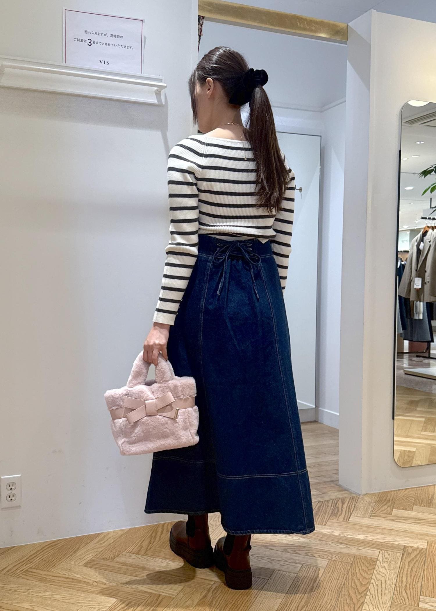 VISバックレースアップフレアデニムスカート/イージーケアブルー / M¥8,899レビュー身長161cmでMサイズ着用です。