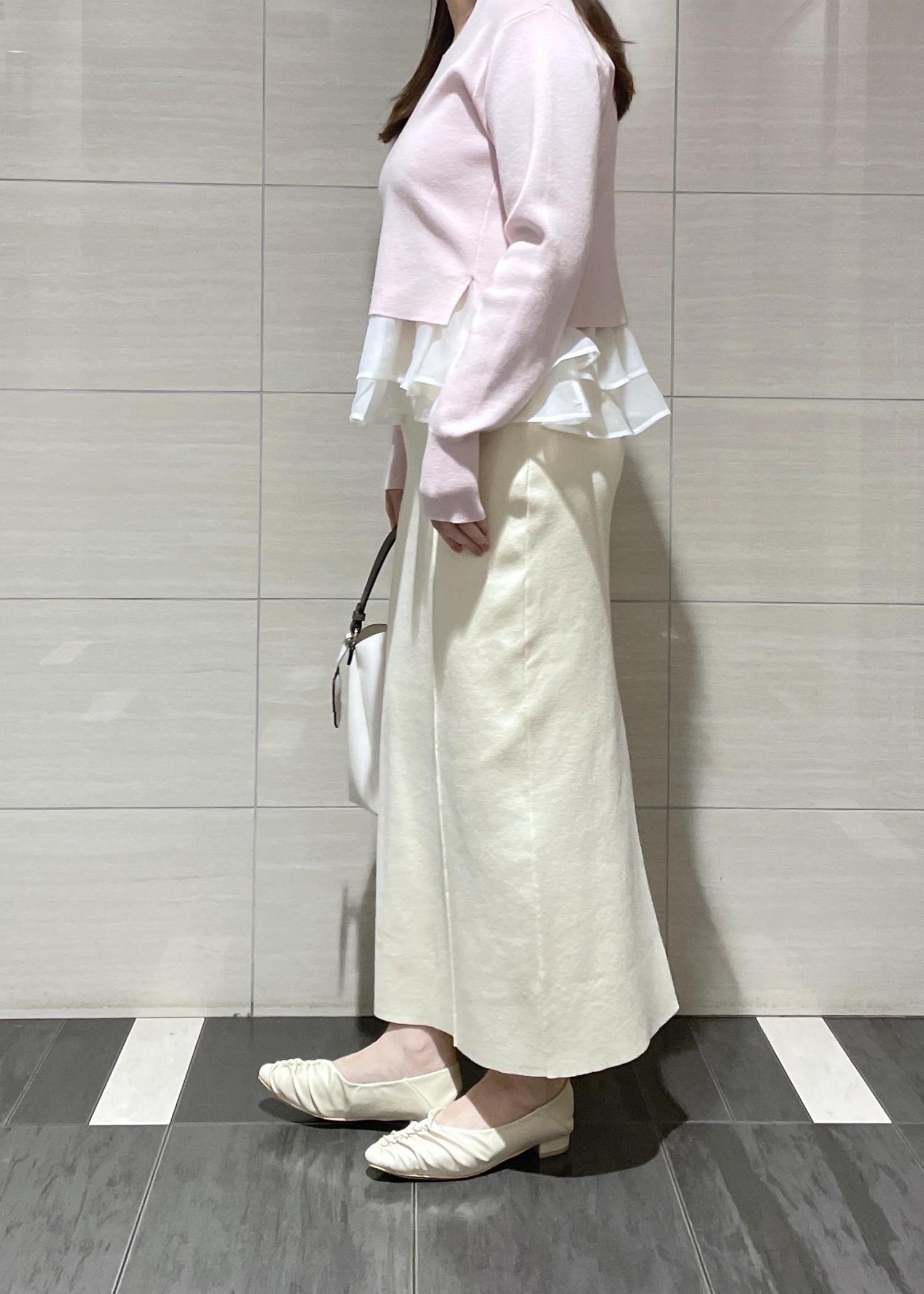 VISピンタックデザインニットスカートオフホワイト / F¥5,929レビュー163cmでくるぶし上くらいの丈感です。