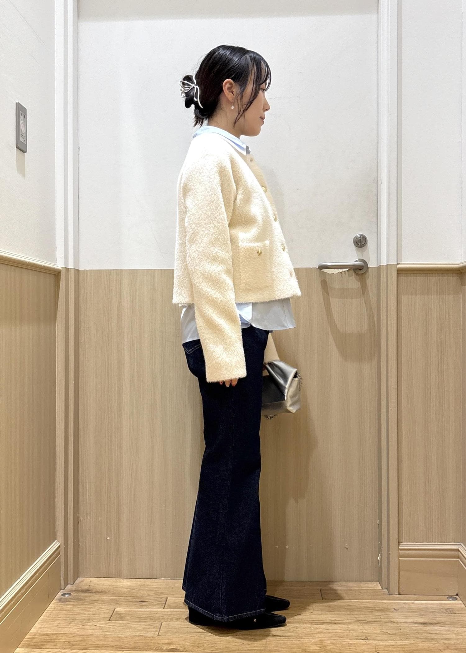 生地はそこまで厚手すぎず、アウターインとしても着用しやすいです。 -