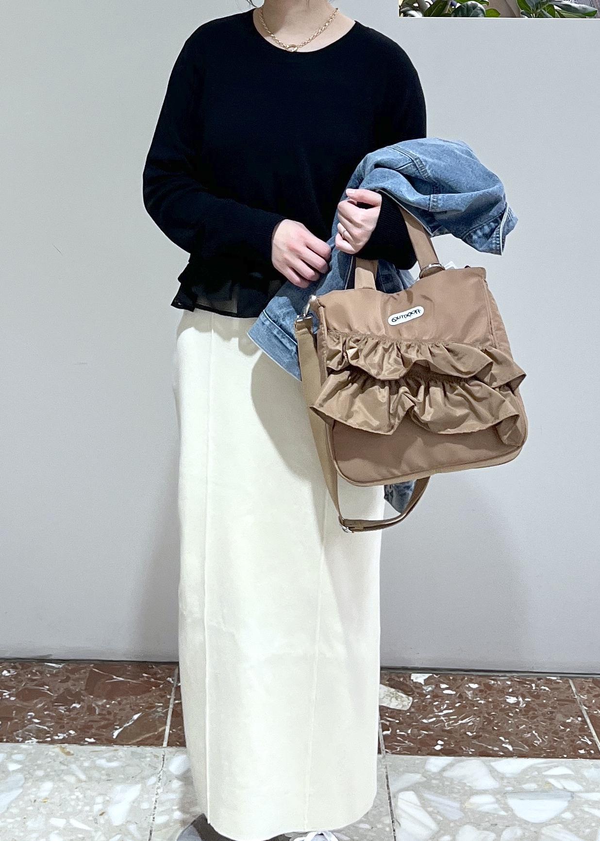 VIS【OUTDOOR PRODUCTS】VIS別注2WAYフリルトートバッグベージュ / F¥8,580レビュー色合いも春服に合わせやすいトーンのベージュです。