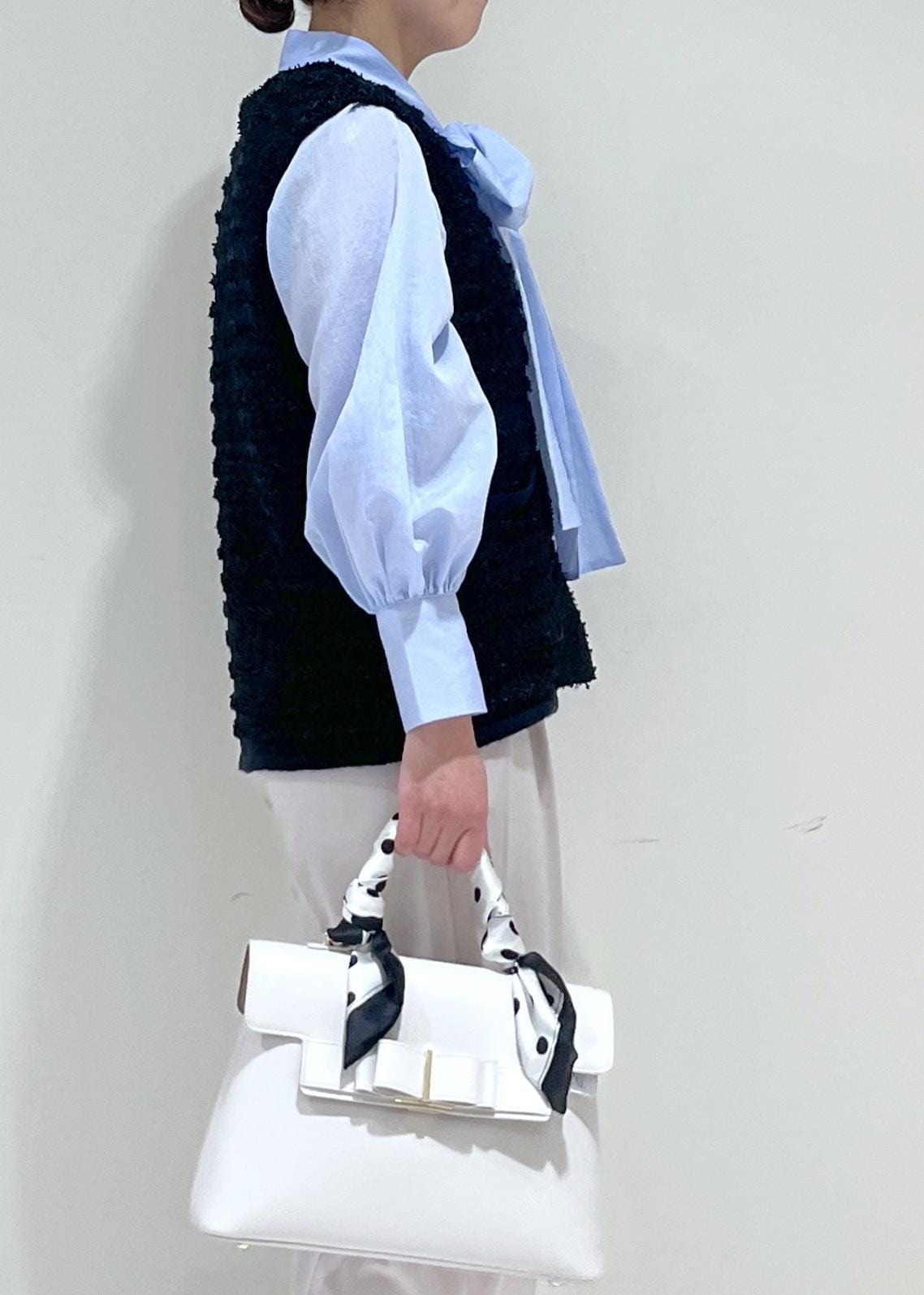 ふんわりと軽い素材感と袖のボリューム感もかわいい。