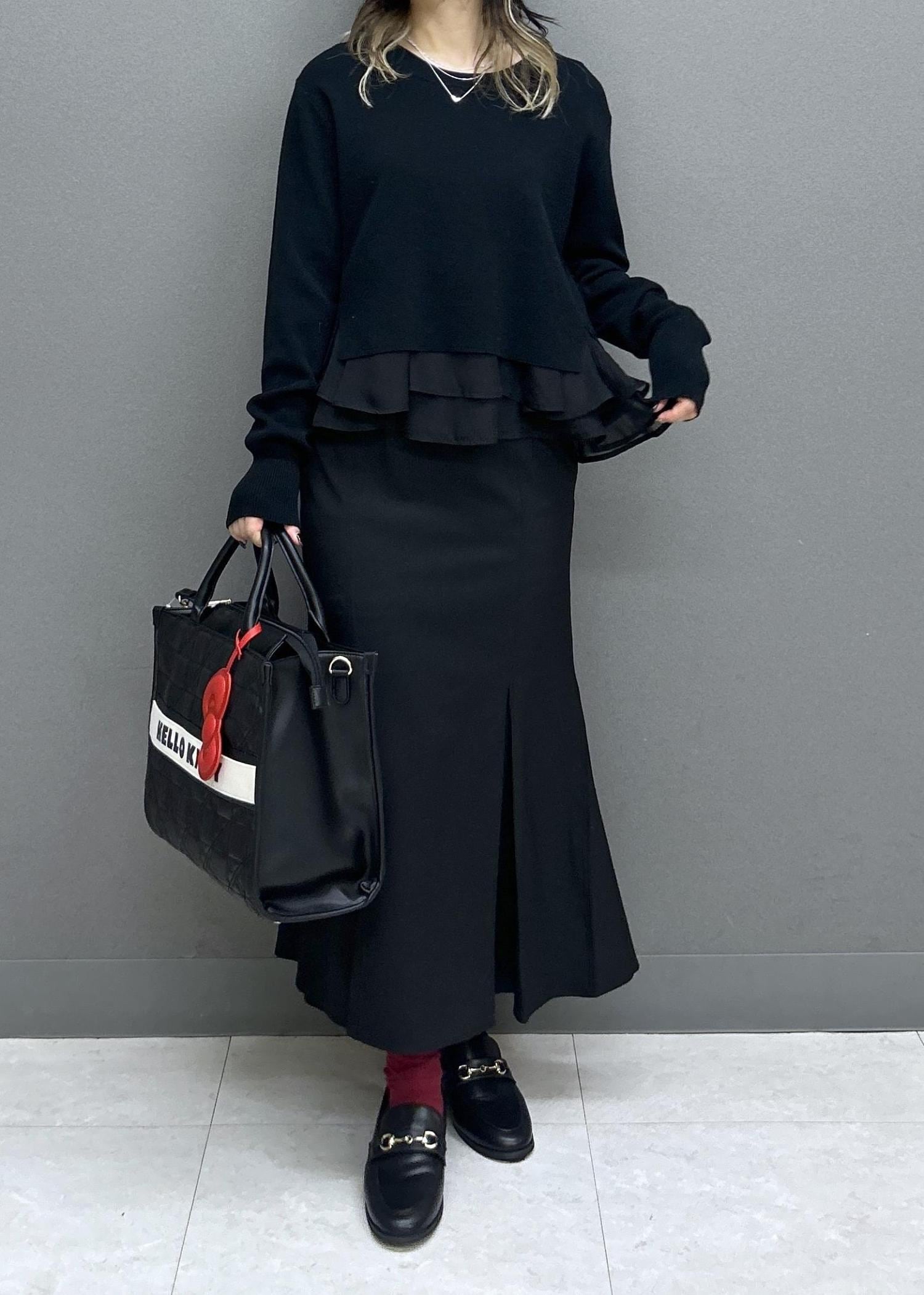 ニット部分は着丈スッキリなので、アウトスタイルでも目線が上がりスラっと見えます◎