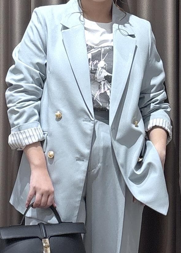VIS【美easy】コンフォート金ボタンジャケット/イージーケア・UVケア・セットアップ対応ライトグリーン / S¥8,899レビュー153cm、Sサイズ着用でおしりが隠れる丈感です!