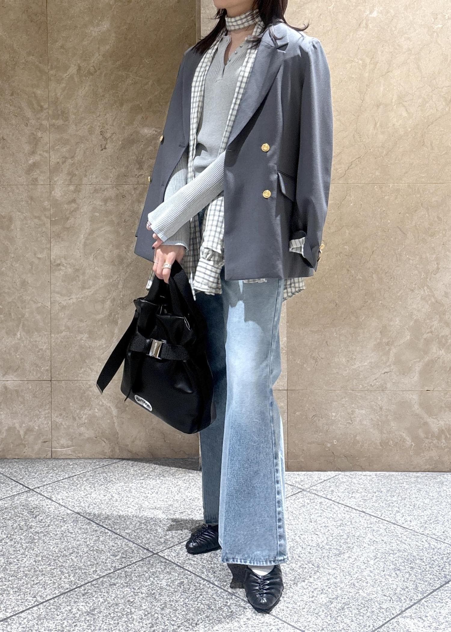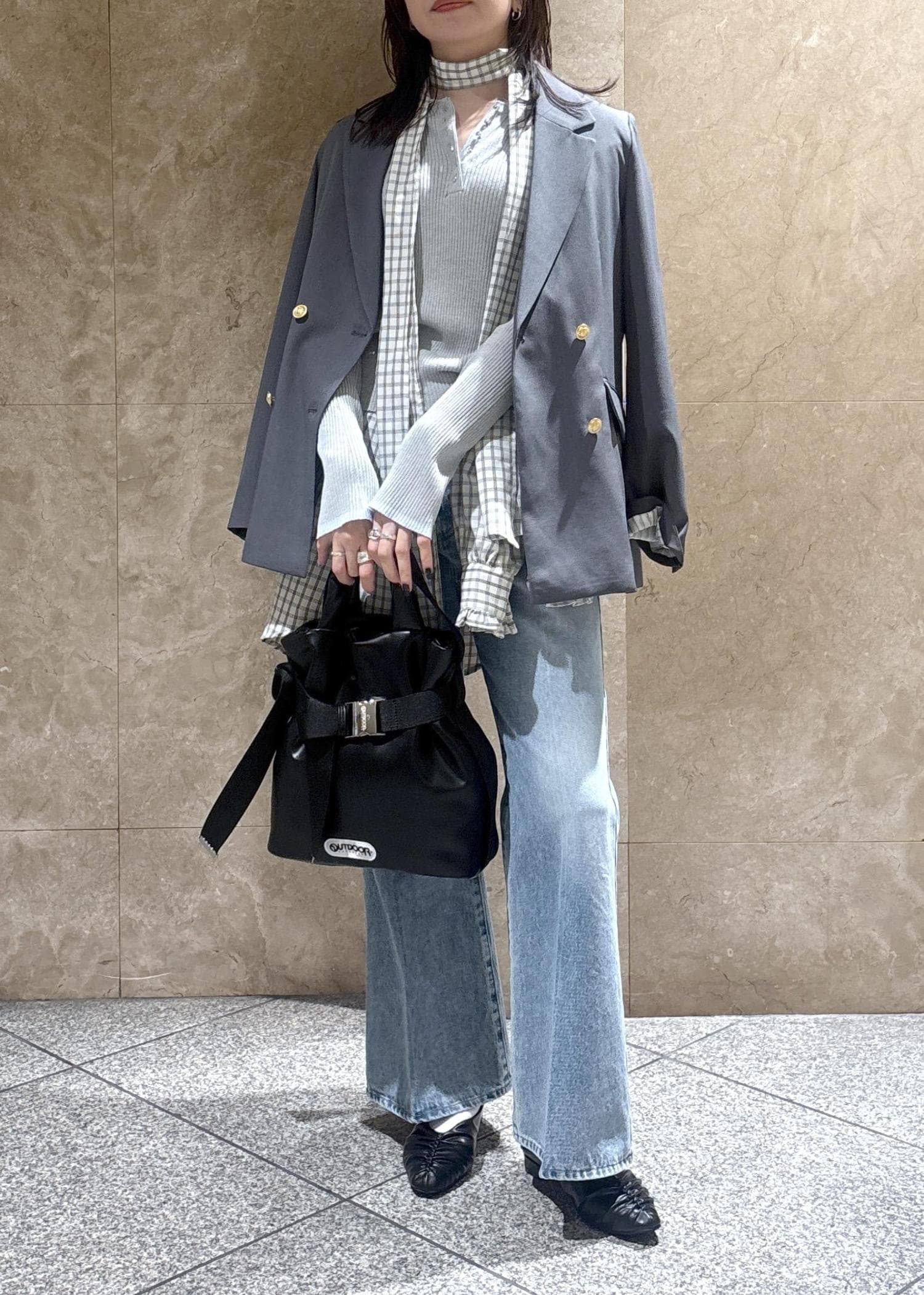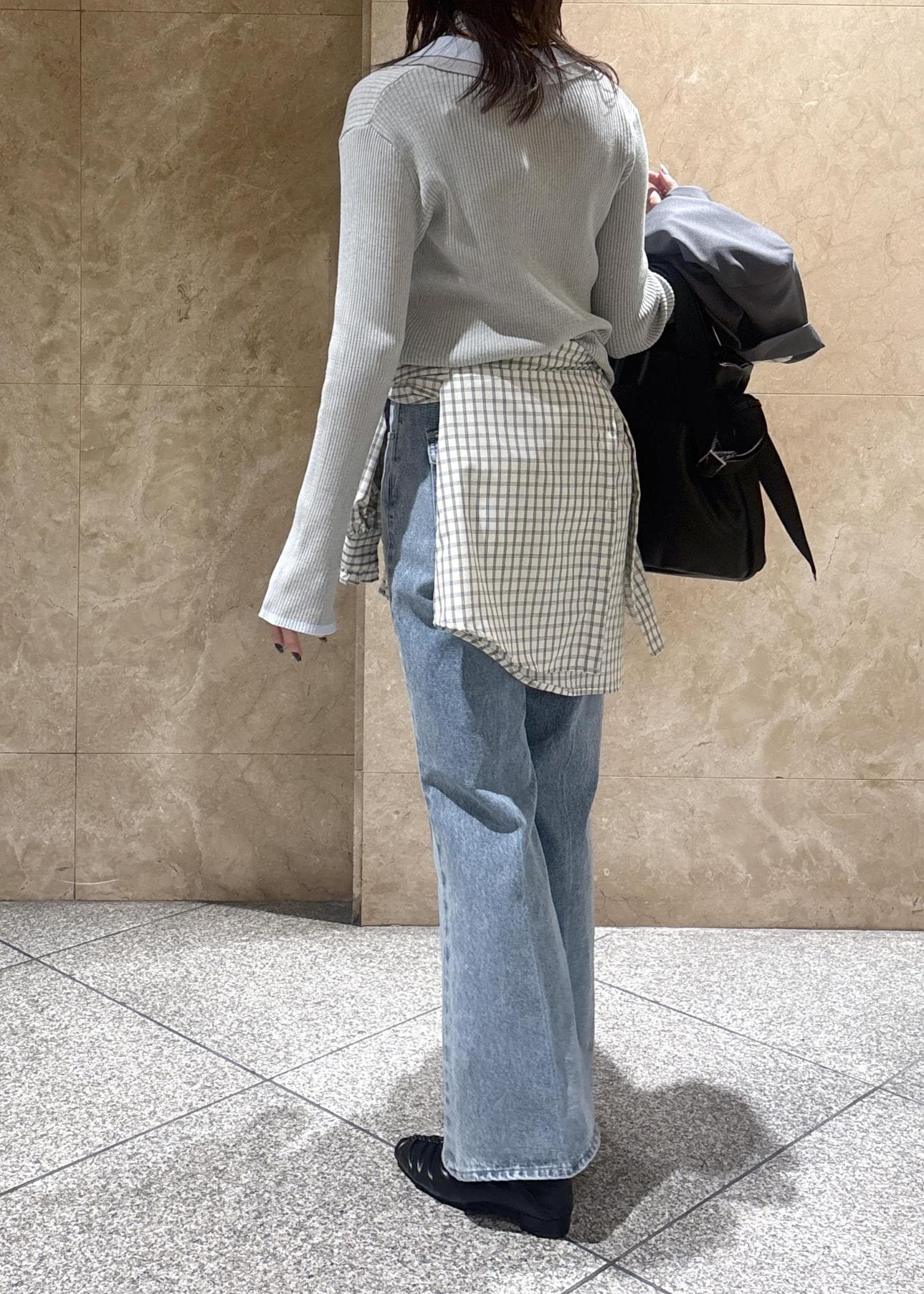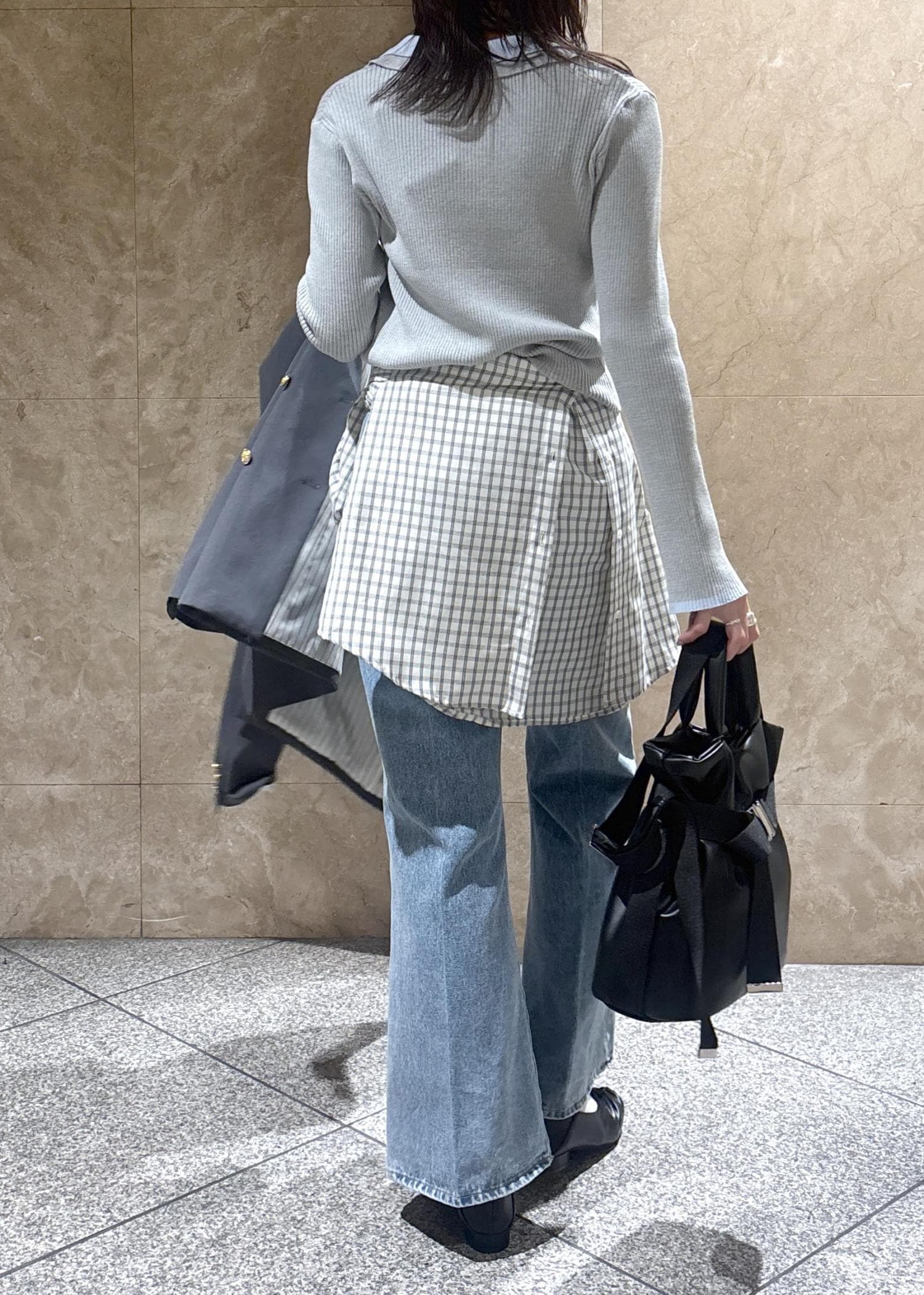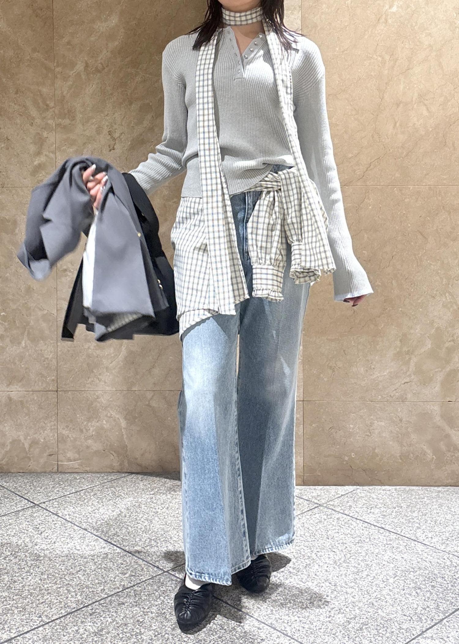 VISチェック&デニムアソートボウタイリボン付きスタンドカラーシャツオフホワイト / F¥6,589レビューあっさりした素材感なので、重ね着してもごわつかずに着用できました。