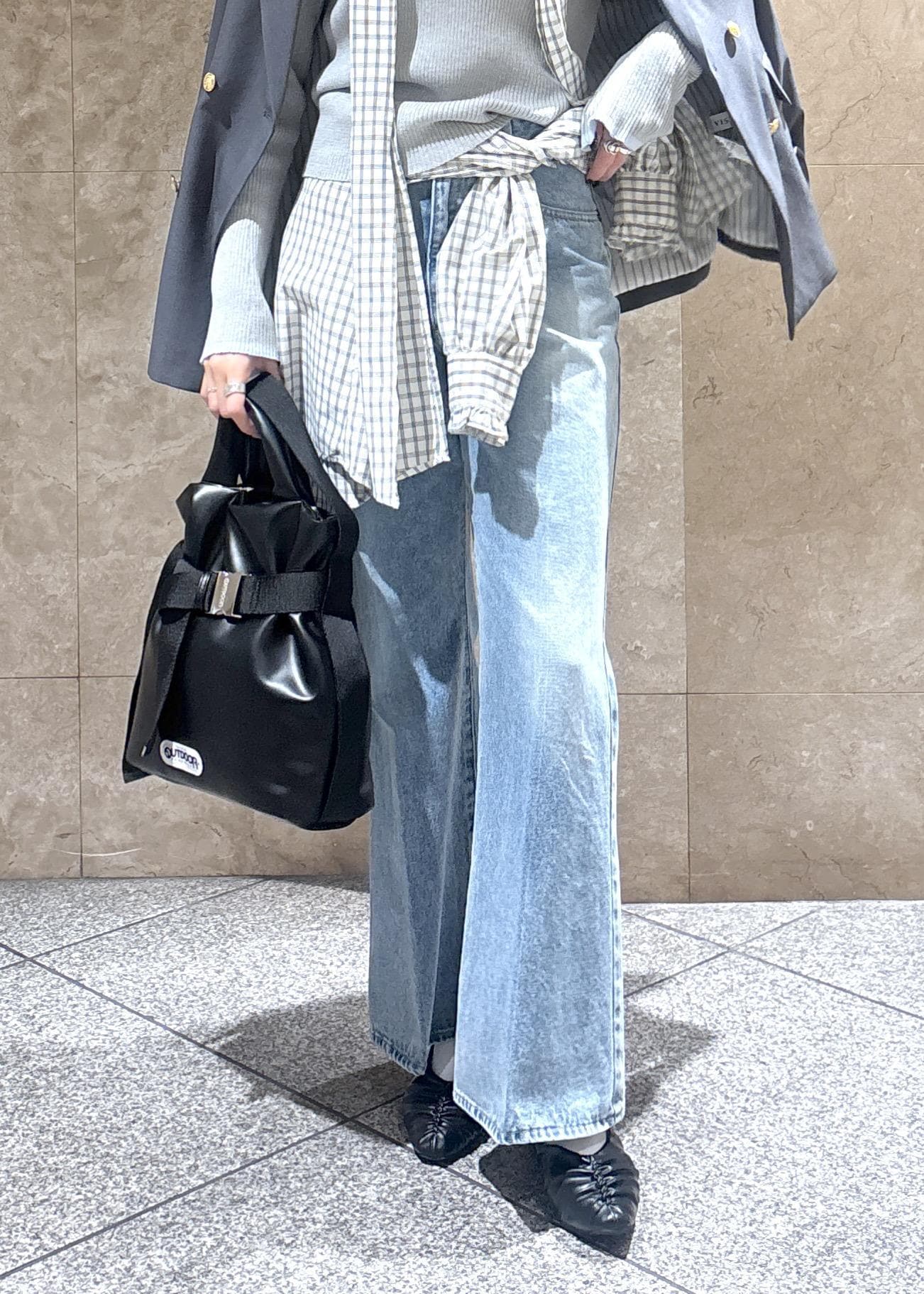 VISフレアシルエットデニムパンツサックス / M¥8,899レビュー着丈は長すぎず、おへそくらいの位置で履いて踵が見えるくらいで、軽さを感じる着丈です。