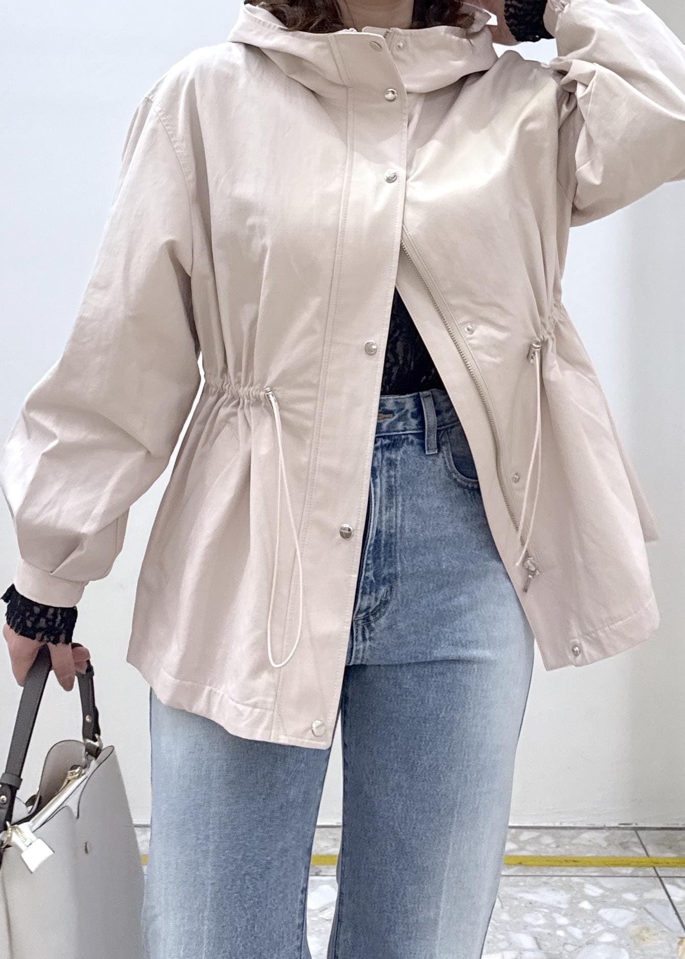 フード付きデザインでカジュアルでも使いやすいです。