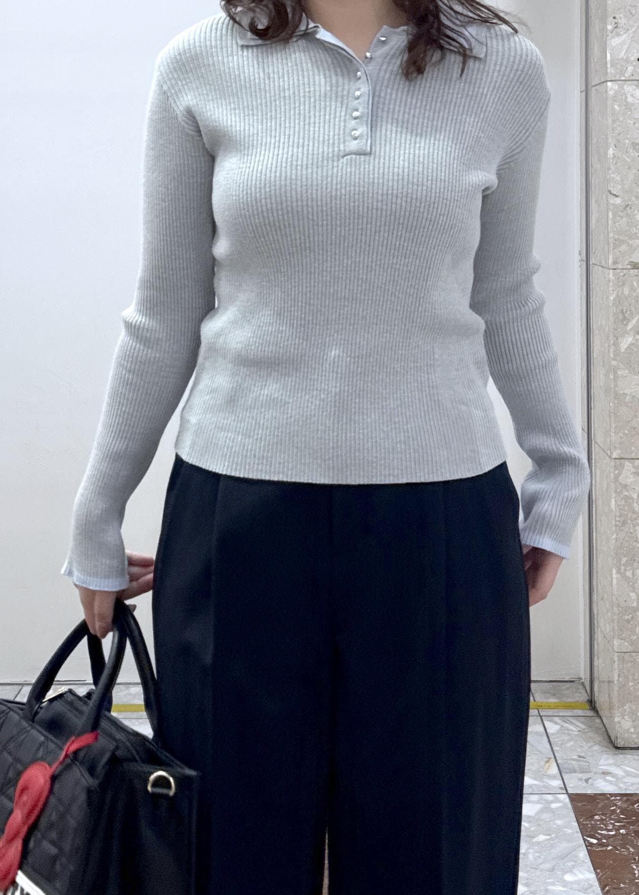 VISダブルカラーポロニットトップスライトグレー / F¥5,489レビュー春に1枚で着るのにぴったりな素材感で着映えも◎