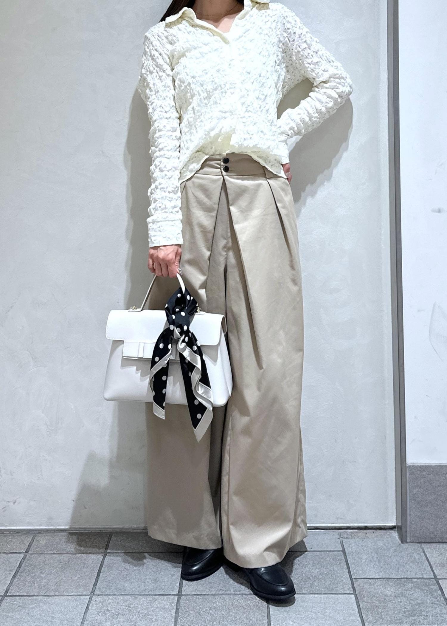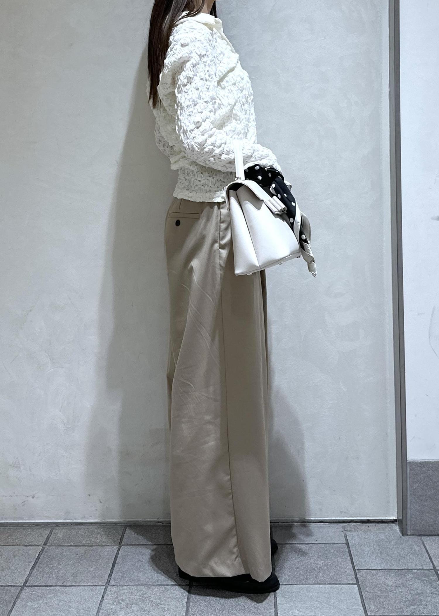 VISフロントタックデザインワイドパンツベージュ / M¥6,589レビュー165cmでMサイズ着用。丈間はくるぶしが隠れる長さです。ワイドでカジュアルにも着用できますしキレイめにも着ていただけます◎