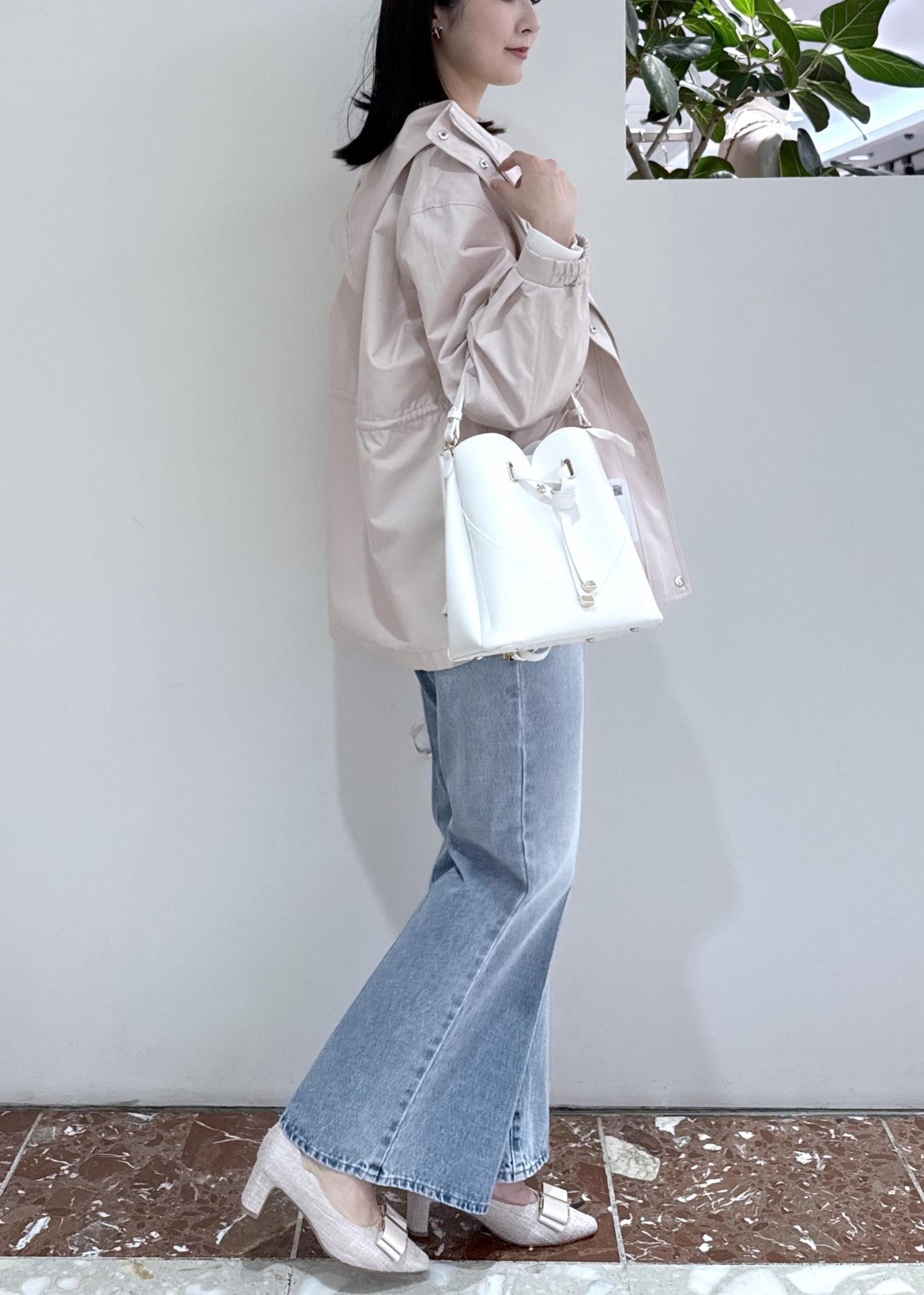 ウエストでサイズ調整ができて、女性らしいシルエットで着られます◎ -
