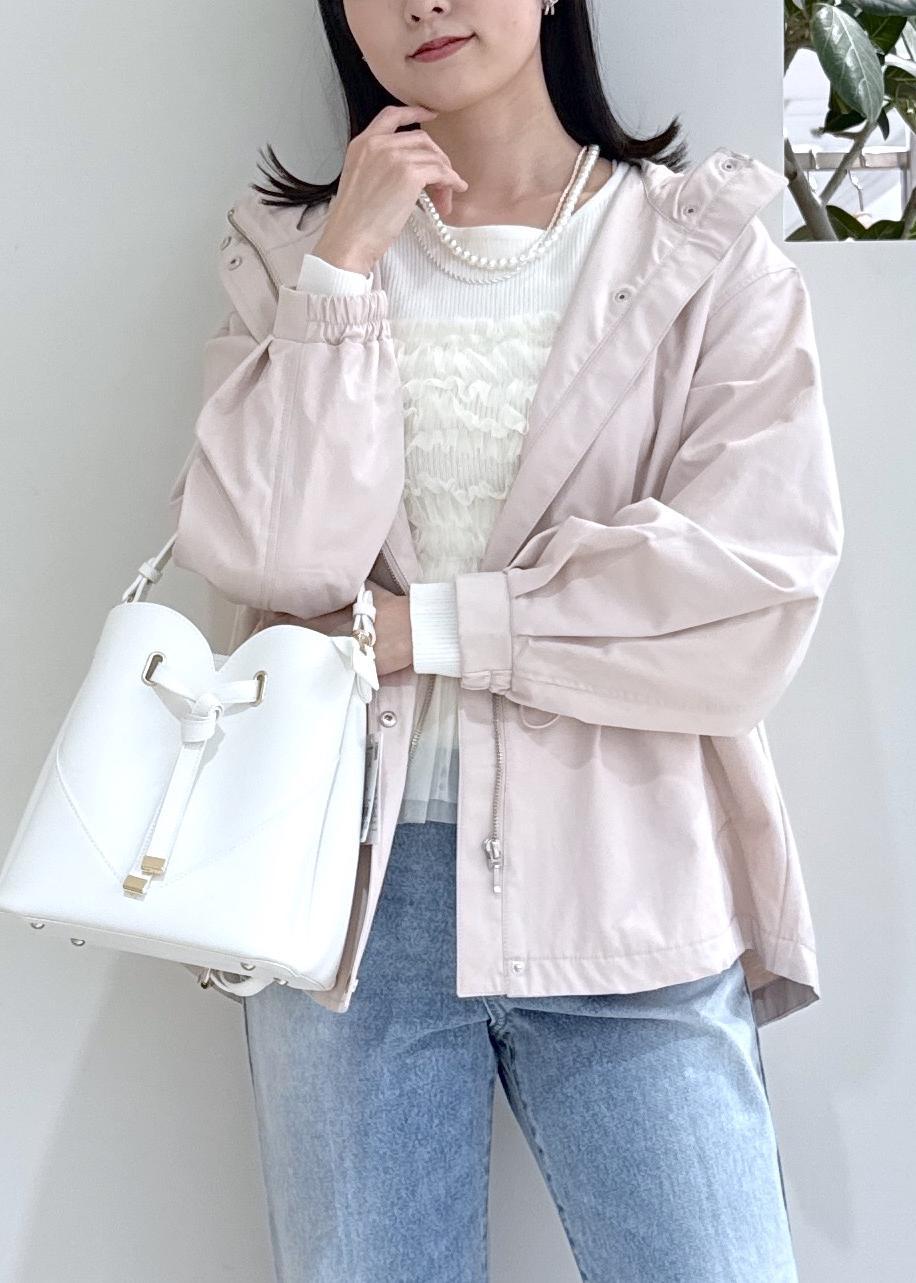予約VISウエストマークナイロンジャケット/スプリングマウンテンパーカーピンク / F¥8,899レビュー164cmで腰にかかる着丈。身幅は程よくゆとりのあるサイズ感です。
