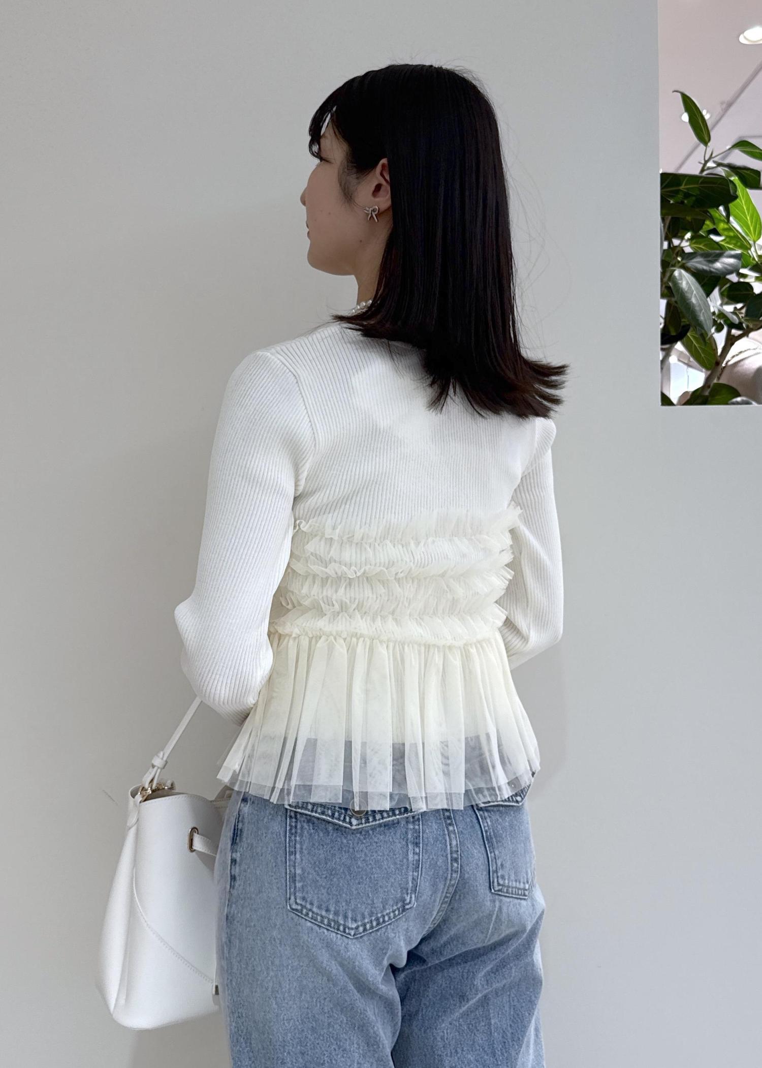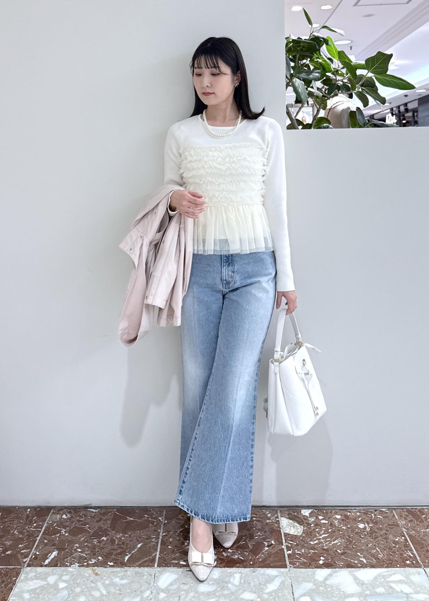 VISチュールドッキングニット/イージーケアオフホワイト / F¥6,589レビュー164cmで腰にかかる着丈です。