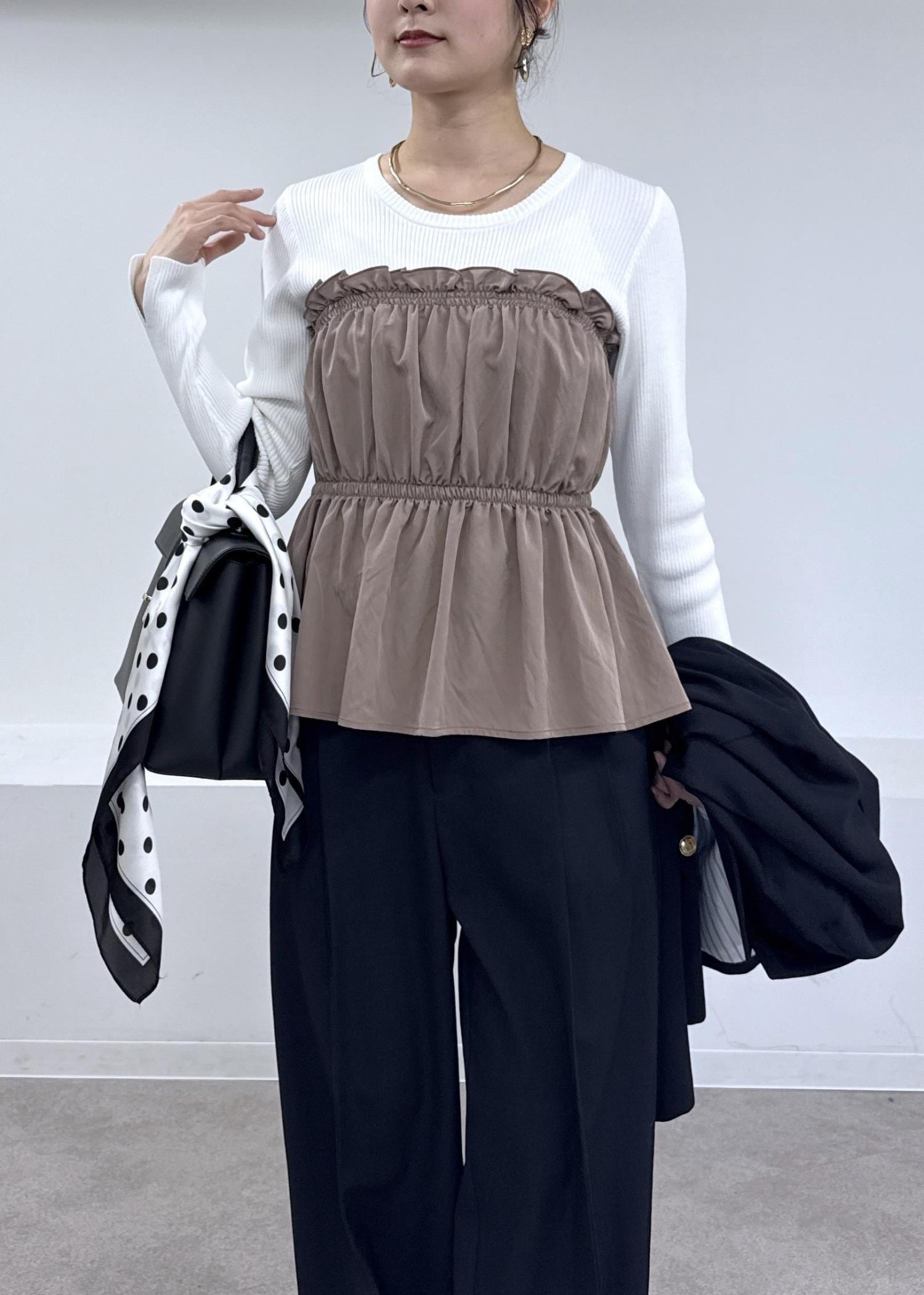 NEW! 予約VISシャーリングビスチェドッキングニット/イージーケアベージュ系 / F¥5,929レビュー164cmで腰にかかる着丈です。