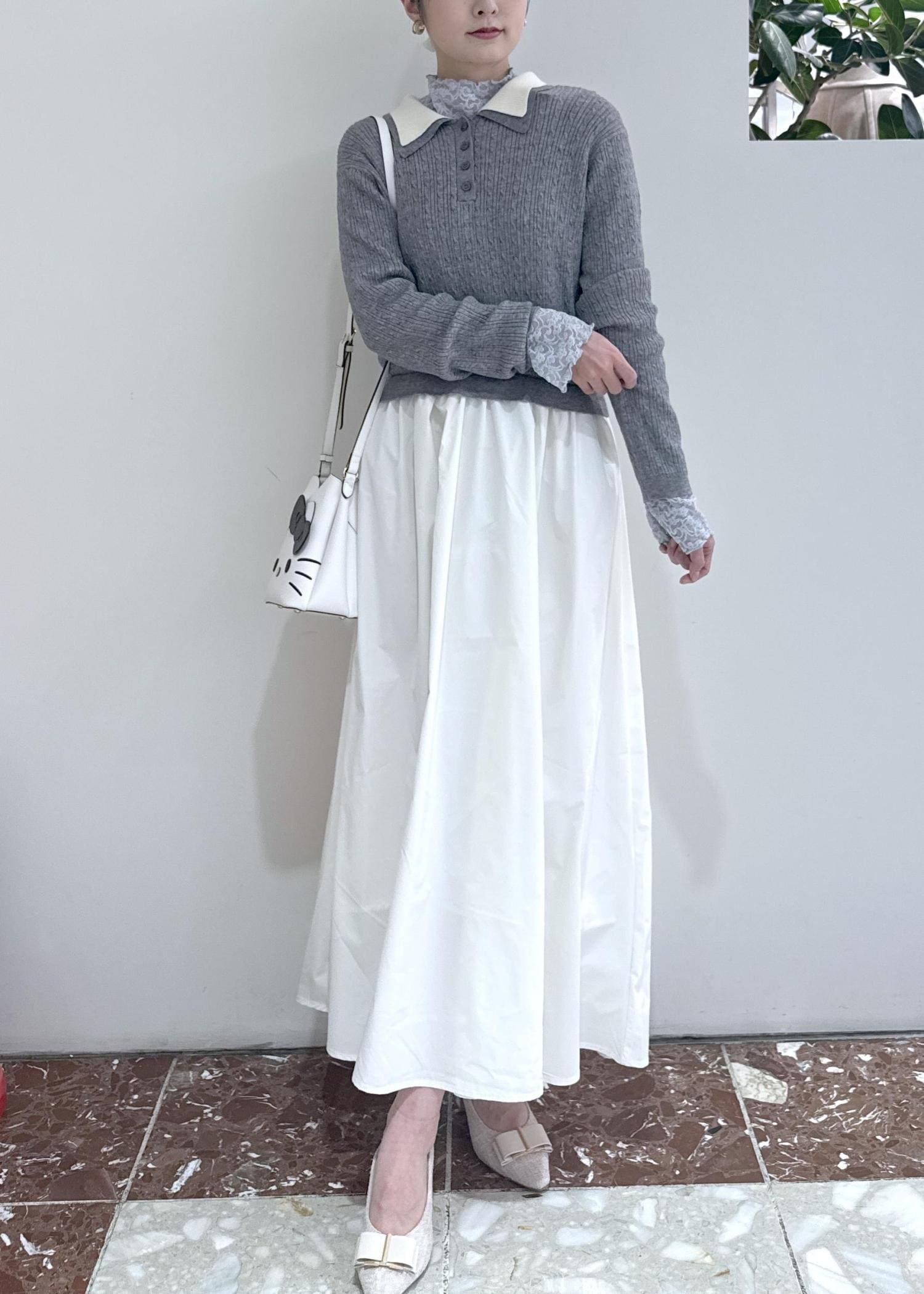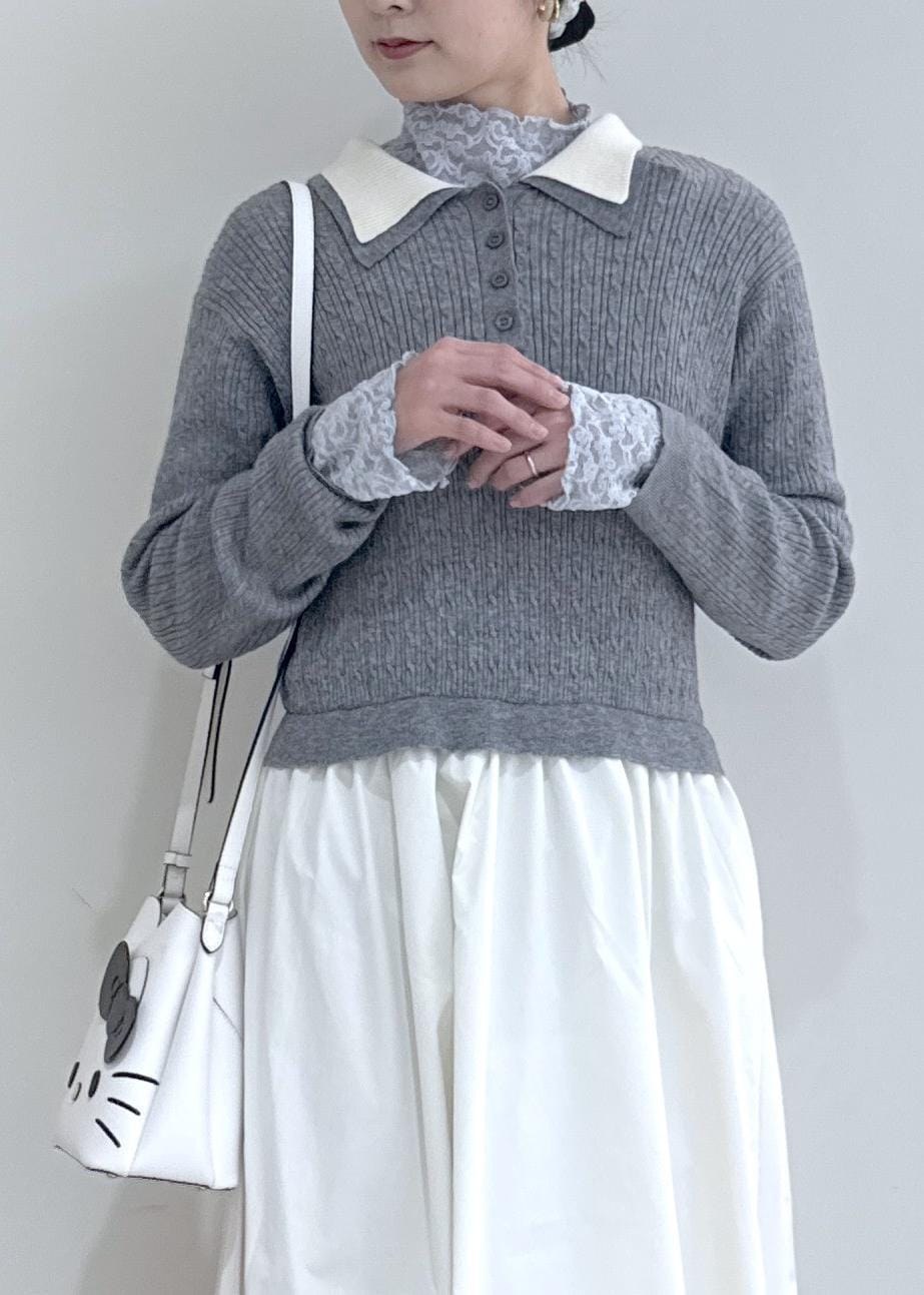 VISダブルカラーポロニットドッキングワンピースライトグレー / F¥8,899レビュー164cmで足首少し上くらいの丈感です。